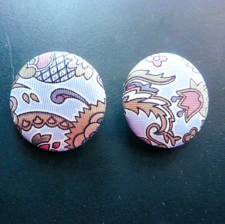 These are unique to me buttons so when they are all sold there can be no more. This design is Paisley style design in pale blue and coffe, detailled and delicate.