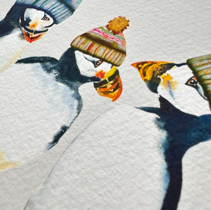 Who doesn't love cute wildlife, especially puffins. They are such characters. I love their personalities and have been trying to depict some of their lovely nature through my painting. I love using professional watercolour paints as they give you the vibrancy and depth needed for fun pieces like this.