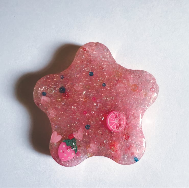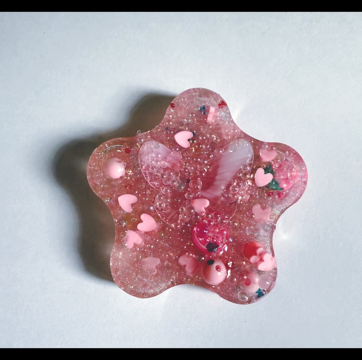 Don’t pull out that beautiful hair anymore or bite those nails! Focus and ground yourself with A flower shaped pink worry stone made from resin. This one is a great visual and touch and pain stim as the back is textured with bumpy, hard bubble beads and a textured butterfly. This stone is great to twist and twirl with one handed your fingers too. As always all stones come with a pouch and keyring charm so you can attach it to your belongings.