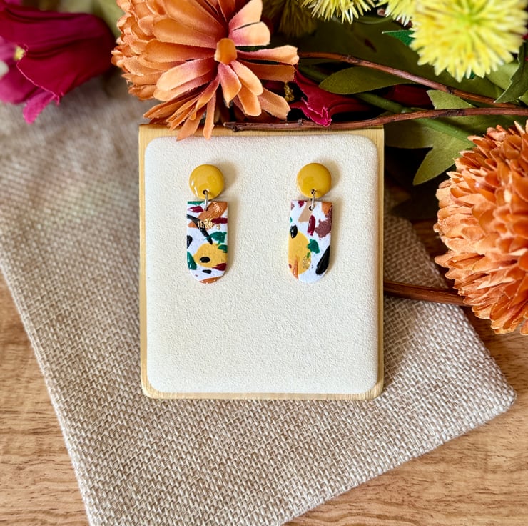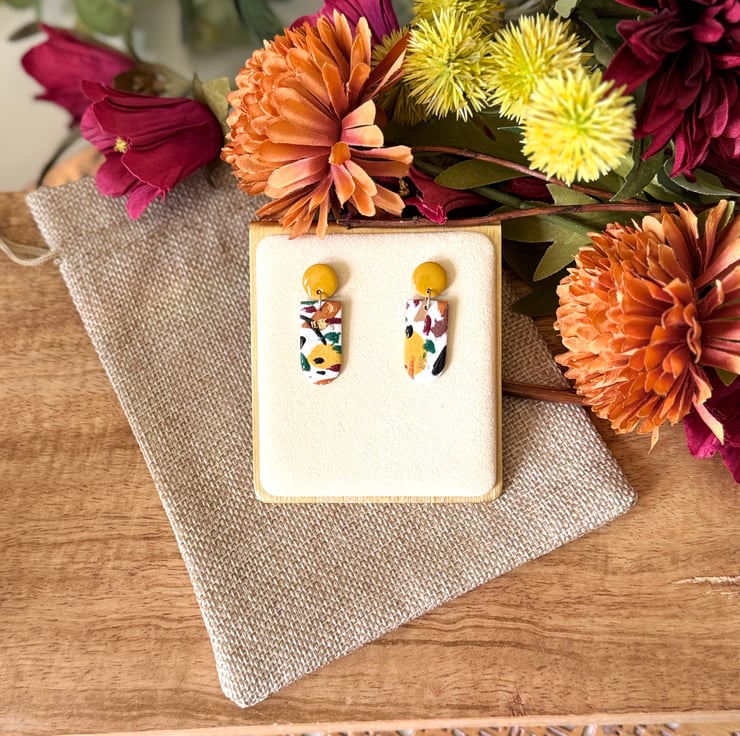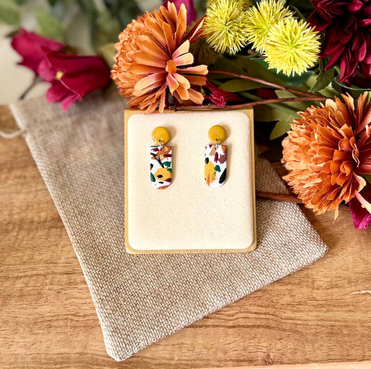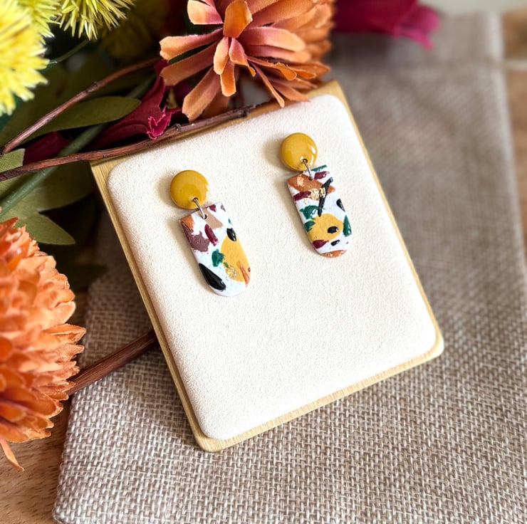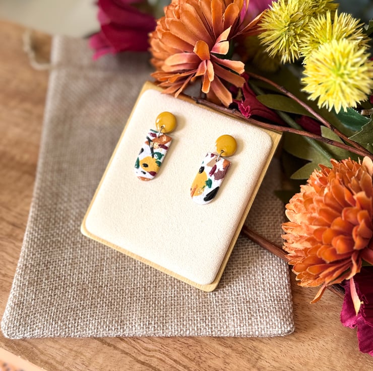 Mustard with subtle shimmer Circle stud tops, complimenting the attached beautiful arch of autumnal spice and colour.