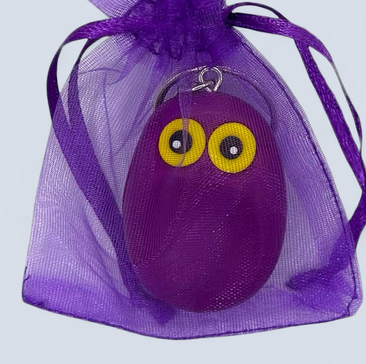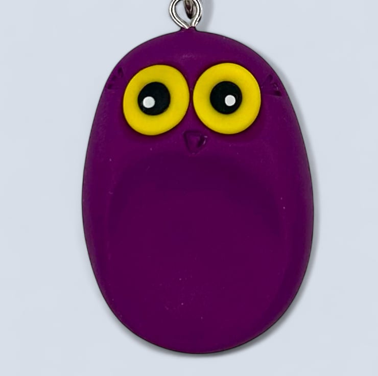 This adorable purple worry stone owl is handcrafted from polymer clay using my unique design. It is a lovely plum purple colour. The owl has an indentation on its tummy and comes with a chain and a sturdy split ring. Its use as a meditation tool or grounding aid makes it a thoughtful gift for anyone needing comfort or as self-care treat for yourself.