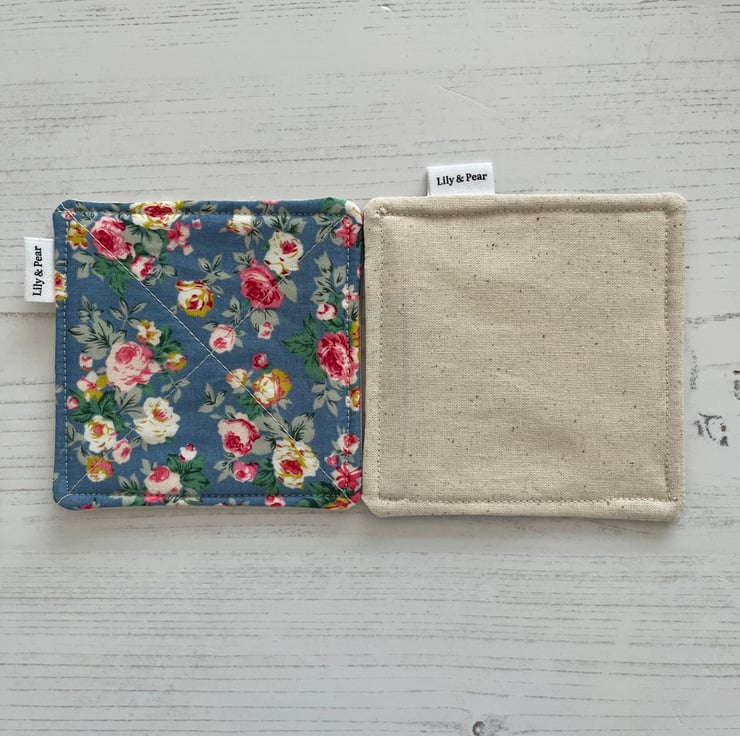 The inner and outer fabric is a beautiful cotton and they are then filled with padded fleece for protecting your surfaces.