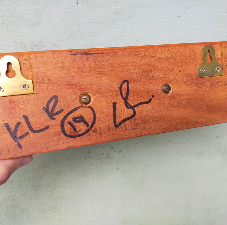 Keys and letters, of course, but maybe utensils, tea towels, condiments, phones, earphones, jewellery, whatever you want to hang from the brass or put on the shelf.