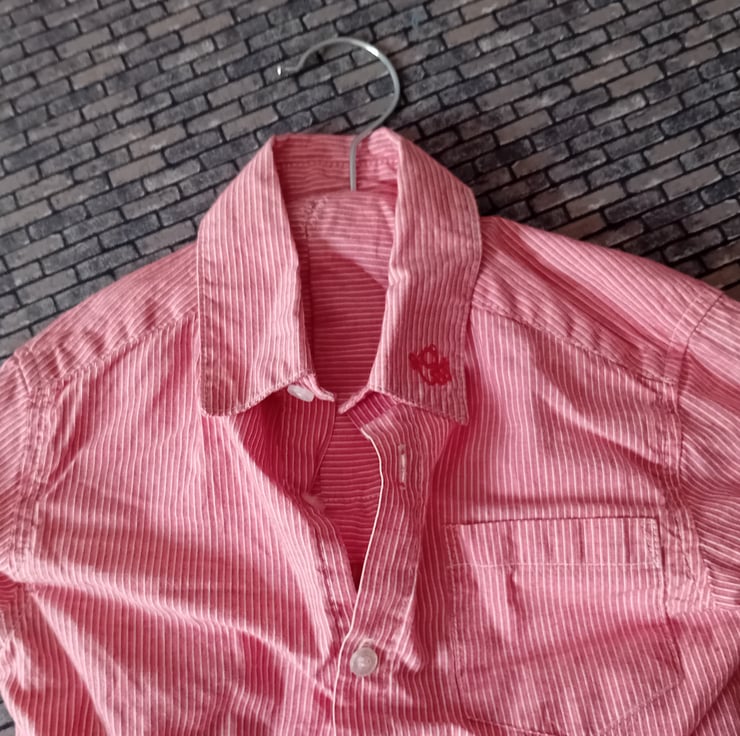 We had a bundle of wee hangers, which gave us an excuse to go on a charit shop hunt and found some lovely wee shirts to upcycle.