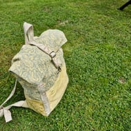 Upcycled from vintage Laura Ashley Green blackberry polyester cotton and navy blue vintage curtaining plus some cotton snippets to make the applique flip flops. There are 3 pockets to the front, ideal for glasses, bottles etc.