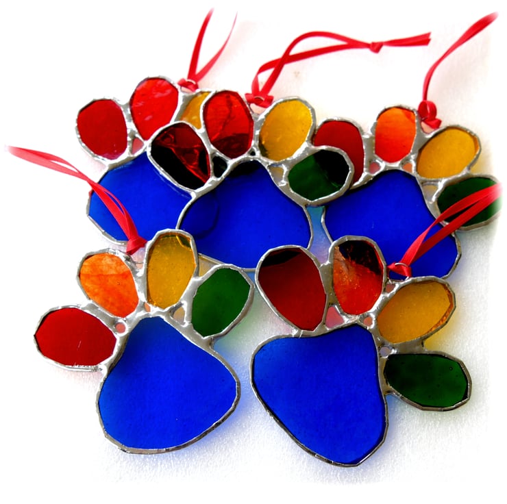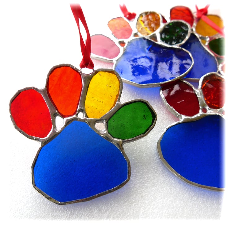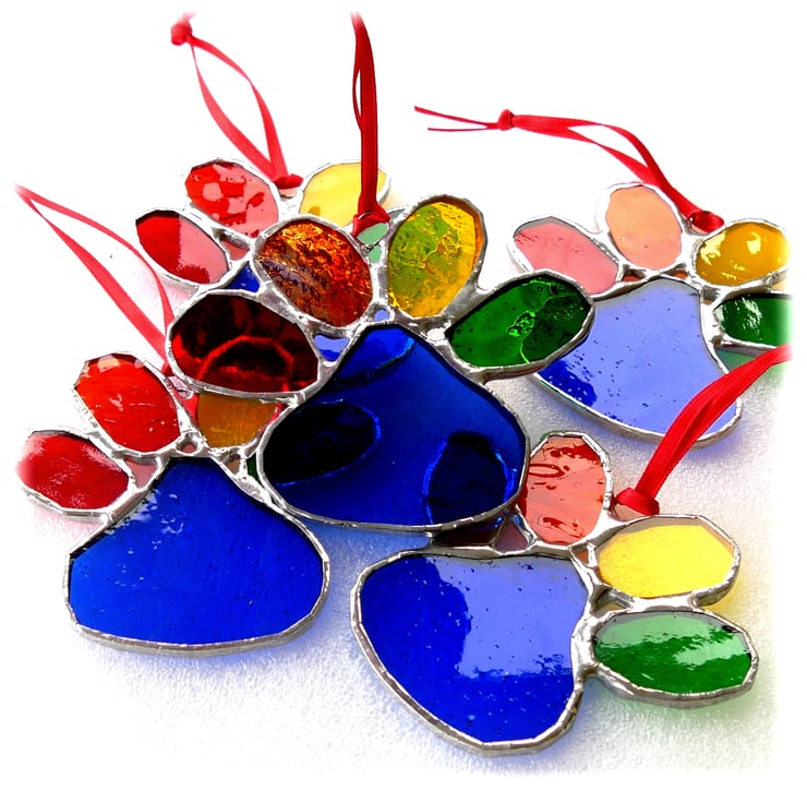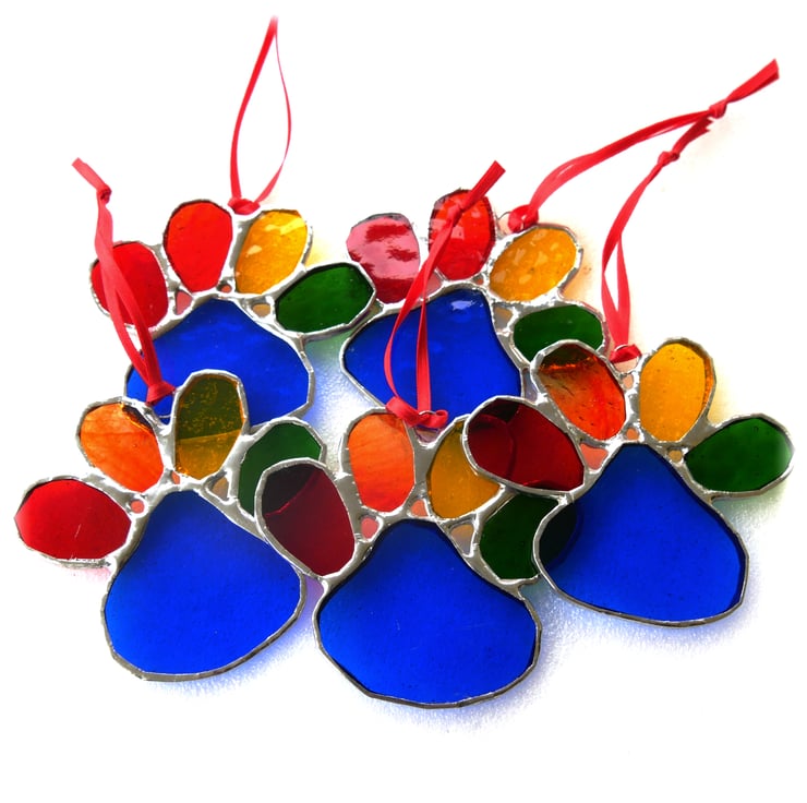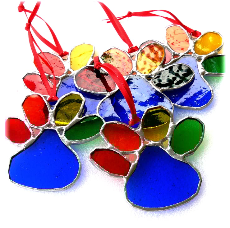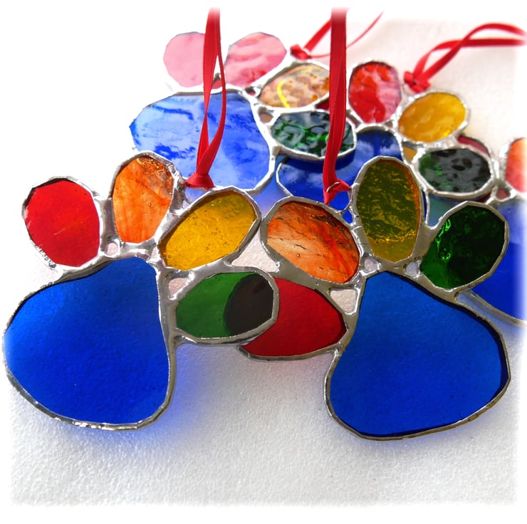 These little suncatchers are 8cm in diameter and are strung with red ribbon.
