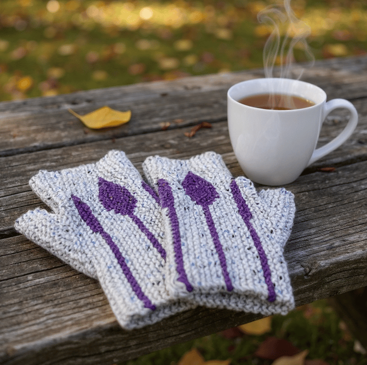 Anthos—Named after the Greek word for “flower,” Anthos reflects the colourful blooming bud and leaf motif on the back of each glove created through the clever use of short rows. These fingerless gloves are knitted sideways in garter stitch on straight needles. This pattern offers the chance to learn three exciting new techniques with step-by-step photo instructions, all while skipping the hassle of knitting in the round, using fiddly DPNs, or even doing purl stitches!