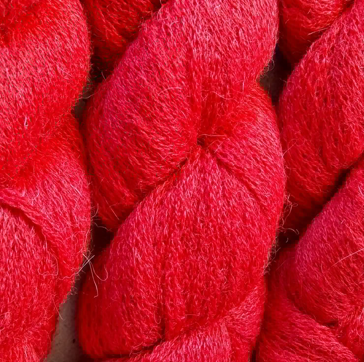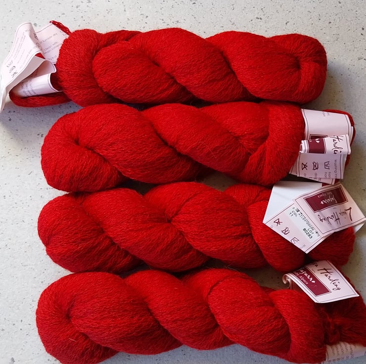 4 x 50g of Louisa Harding Susarro in a rich Red.