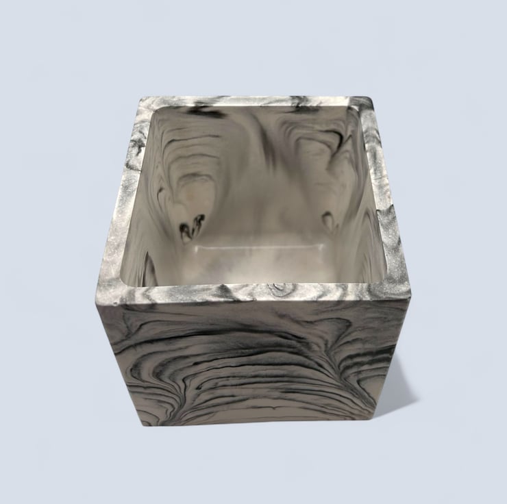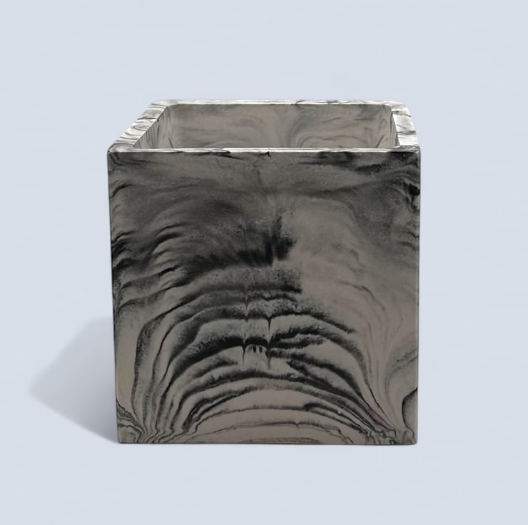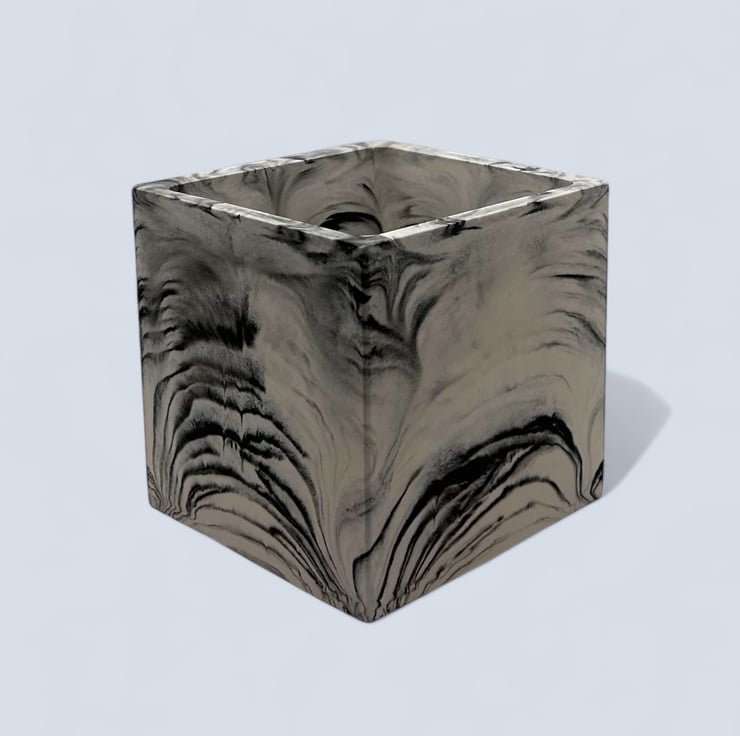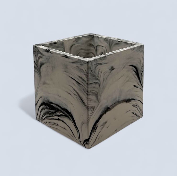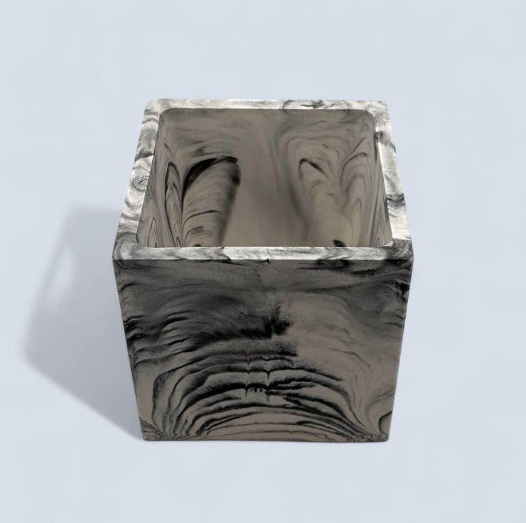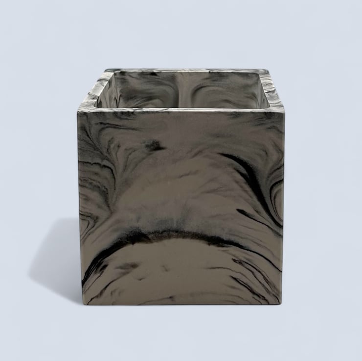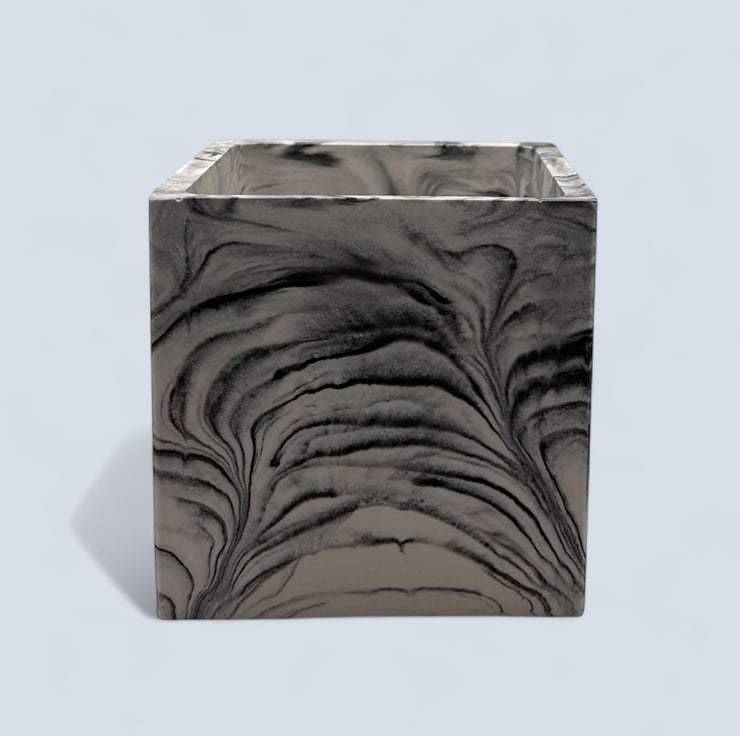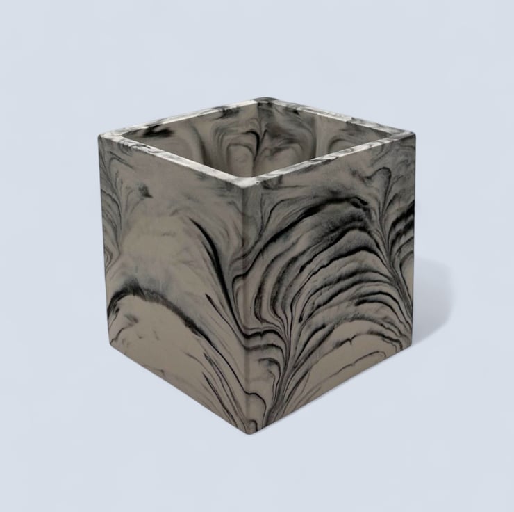 This cube plant pot features a unique marbled design in shades of black and grey against a white backdrop. Inspired by the timeless elegance of marble, I created this pot to bring a touch of sophistication to any space. The planter is water- and weather-resistant with a smooth, durable finish. Its neutral colours make it an ideal gift or a lovely treat for yourself.