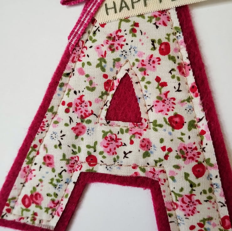 Pretty floral letter has been sewn onto coordinating pink felt to really make it stand out. Finished off with a bow and happy birthday ribbon. The card measures approx 12.5x12.5cm and is left blank inside.