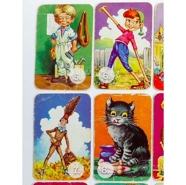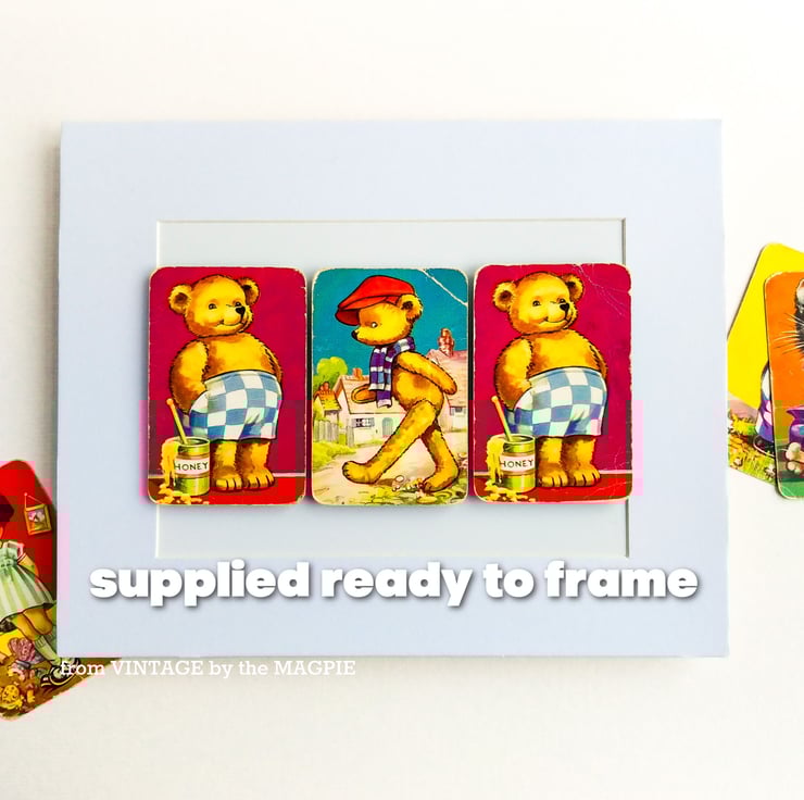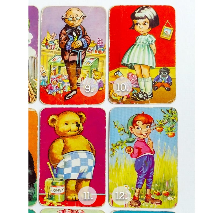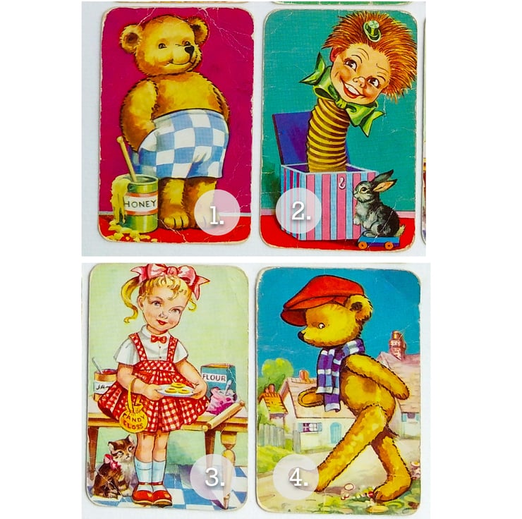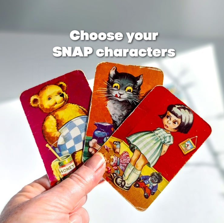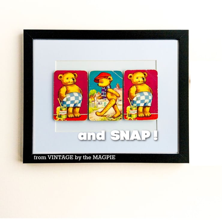 These are the original cards from a much loved pack of SNAP. They do show signs of wear and age. This adds to the overall charm of the finished piece.
