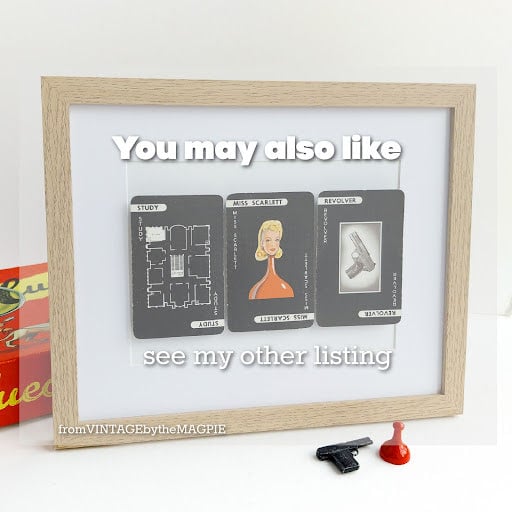 Fabulous VINTAGE style one of a kind art. Created using original cards from a much loved SNAP card pack from I think the 1960s,1970s These iconic cards include illustrated characters including Black Cat, Jack in the Box and many more.