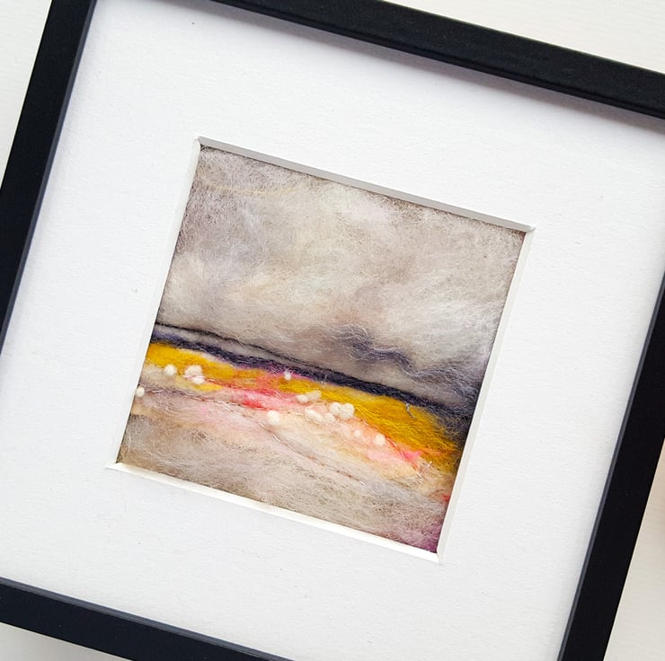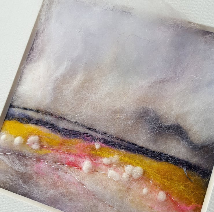 Original fibre art, a felted textile landscape of A frosty morning on the coast