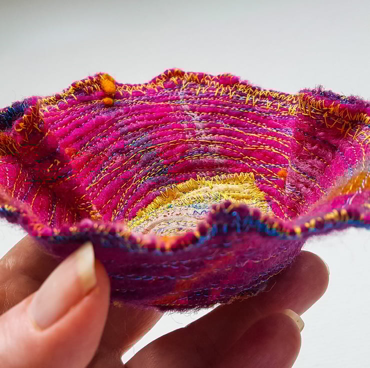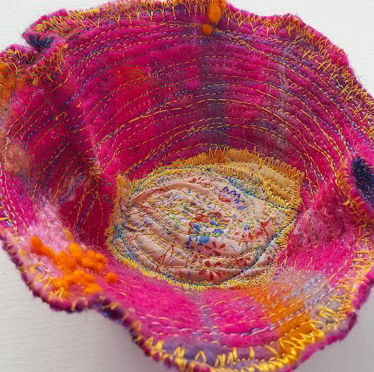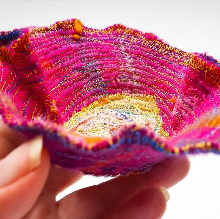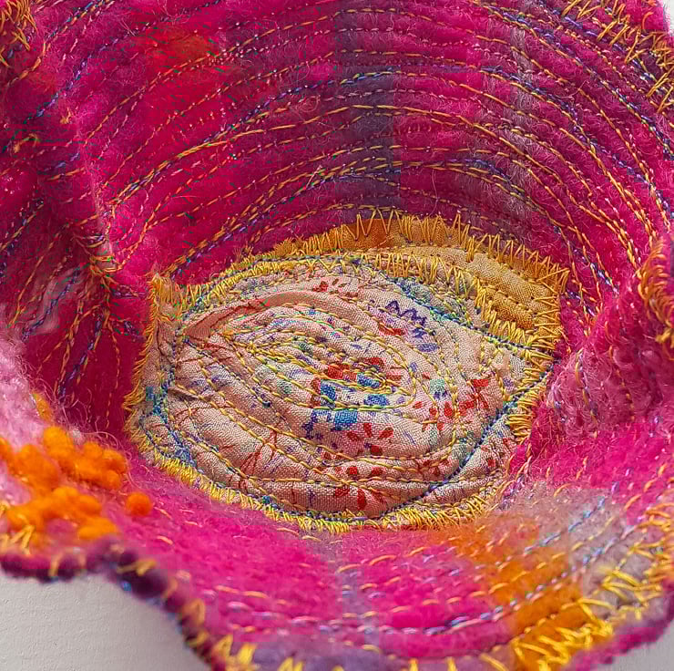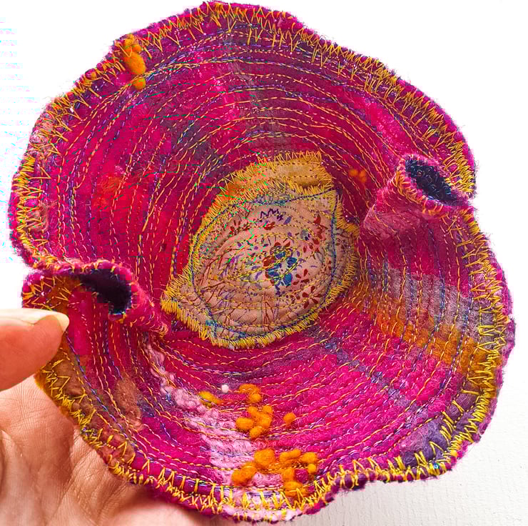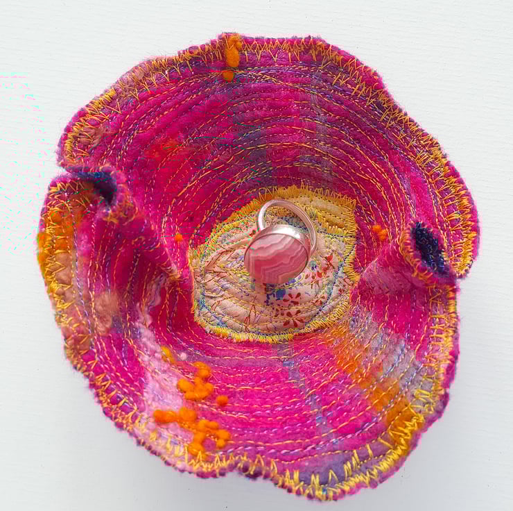 Vibrant Flower TRINKET DISH handmade in felt, fibre and stitch