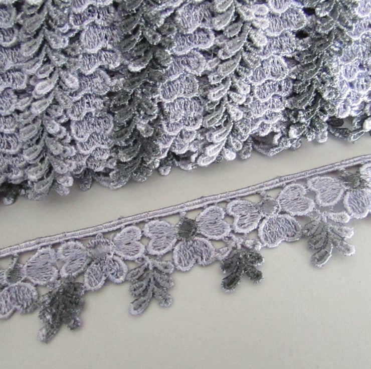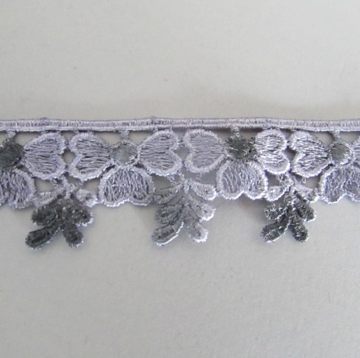 BEAUTIFUL EMBROIDERED GREY OMBRE VENISE LACE TRIM