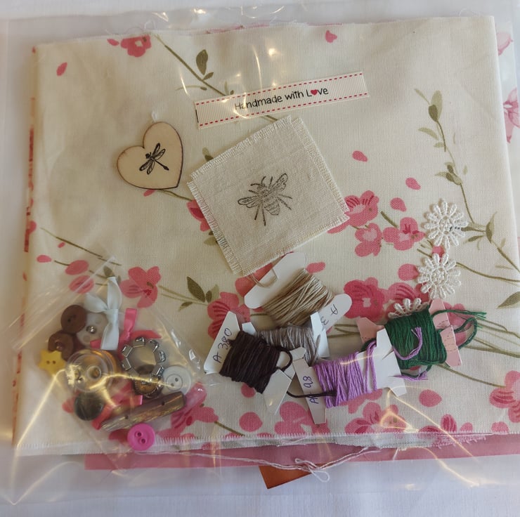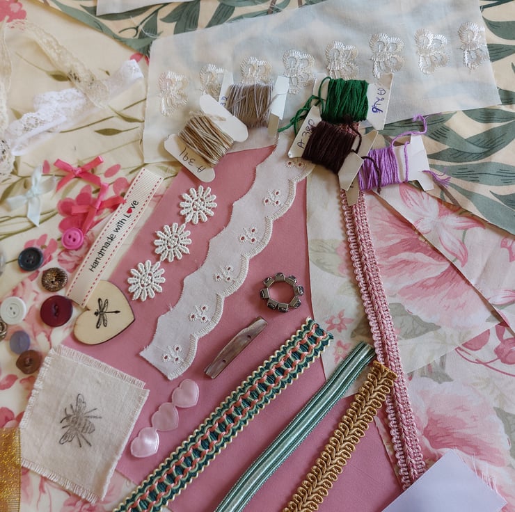 threads, buttons, ribbons in varying sizes and lengths, all you need to begin your slow sewing journey. some items are recycled