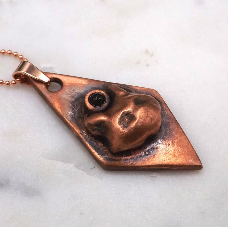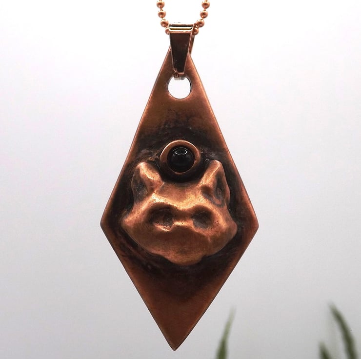 Recycled Copper Cat of Protection Pendant Necklace with Black Agate.