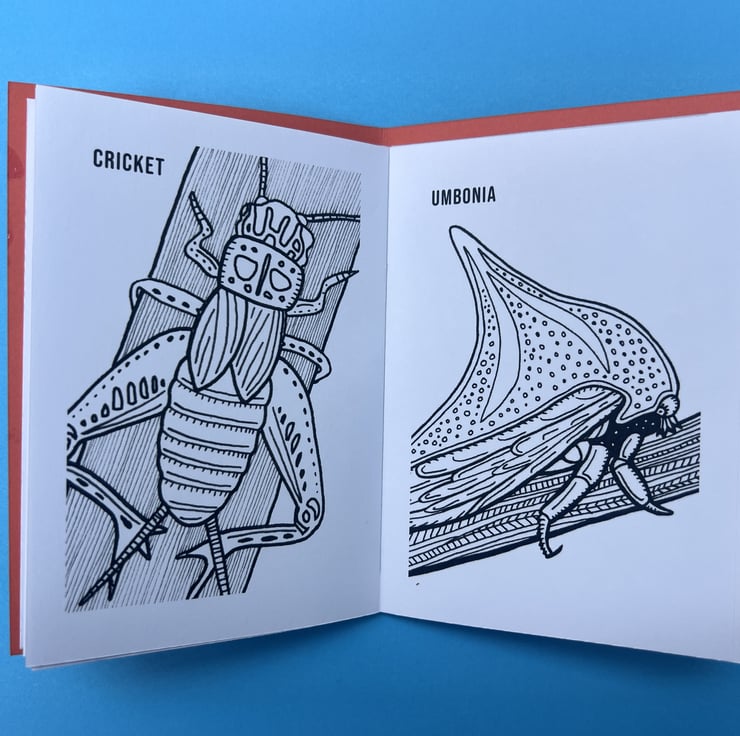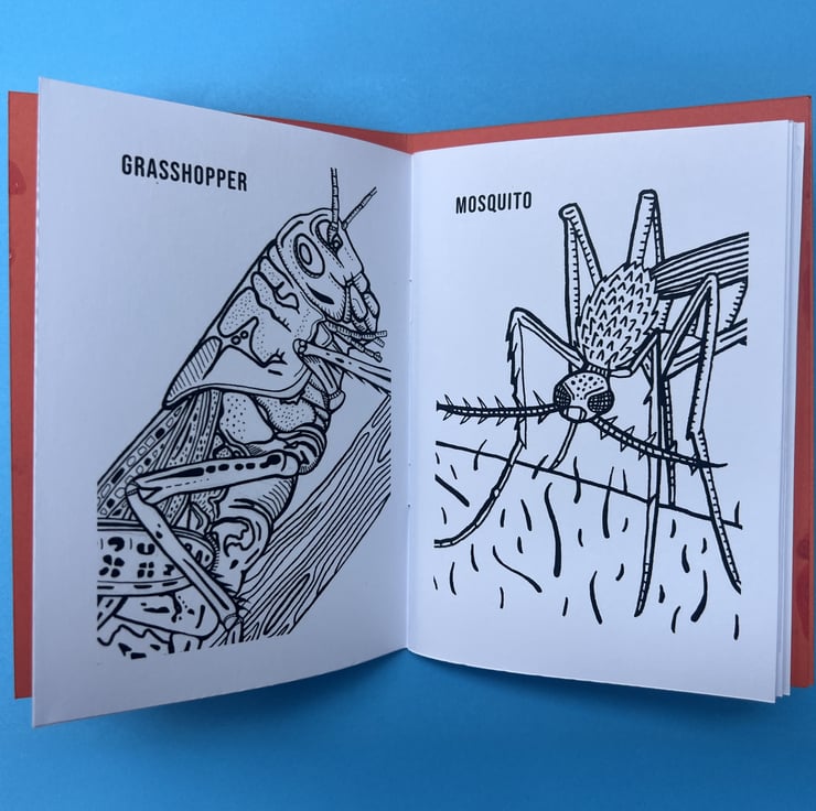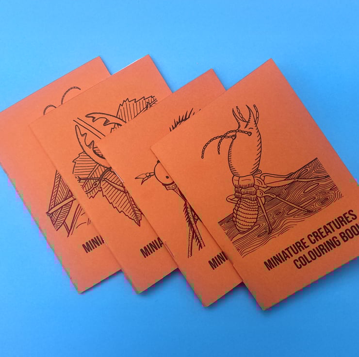 Discover the tiny wonders of the natural world with this handmade colouring book, featuring 16 of my original miniature creature illustrations – including curious crawlies like the grasshopper, worm, woodlouse, praying mantis, termite, mosquito, long dance fly, earwig, and many more.
