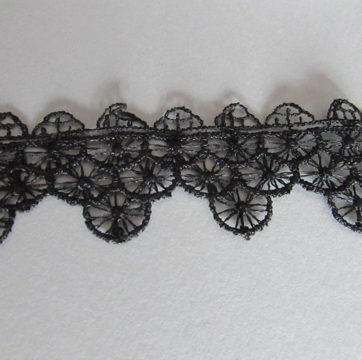BEAUTIFUL EMBROIDERED BLACK VENISE LACE TRIM