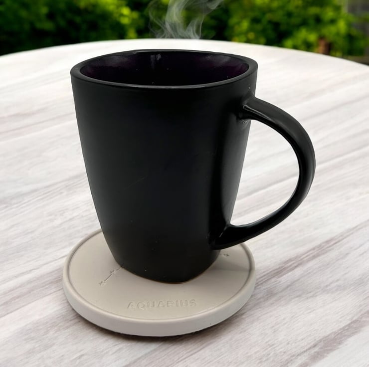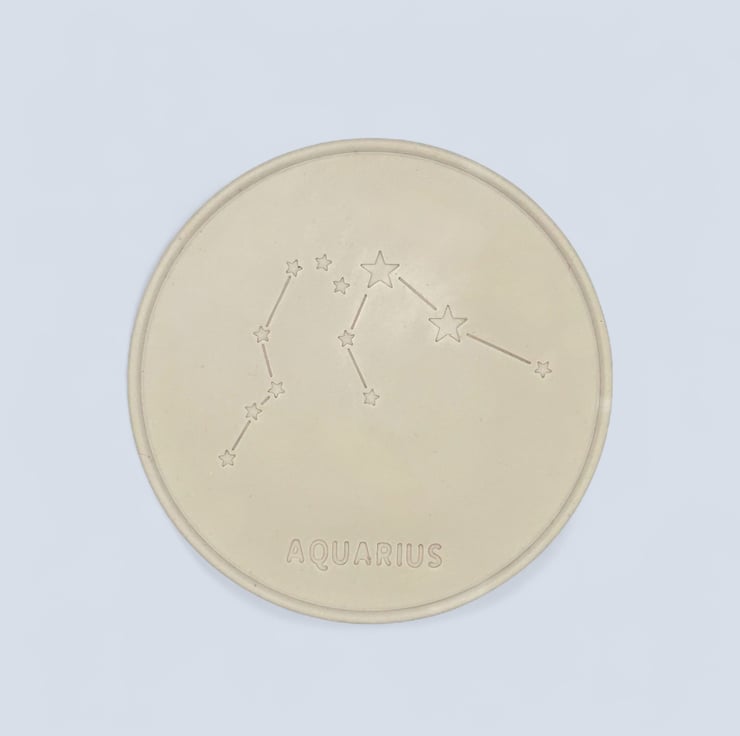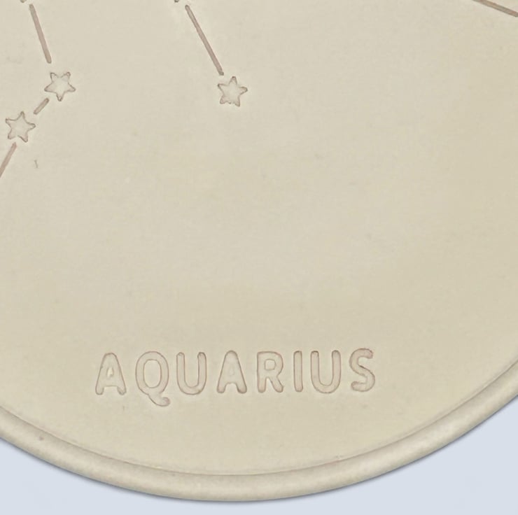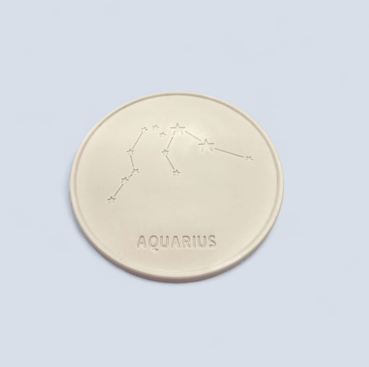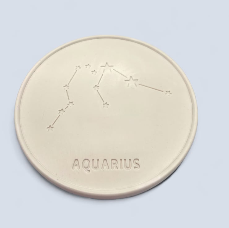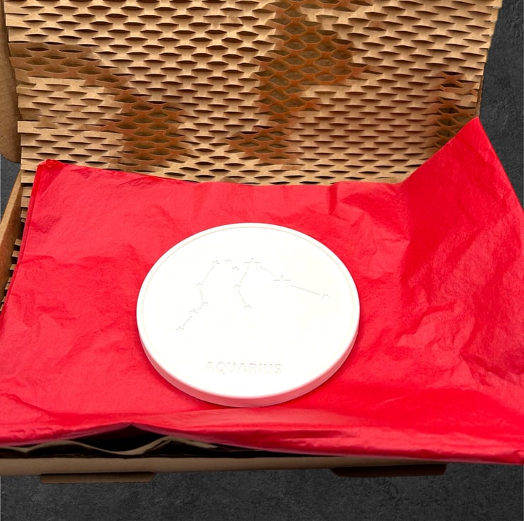 This coaster is a thoughtful gift for anyone born between the 20th of January and the 18th of February. It features a design depicting the Aquarius constellation and is made from a premium British plaster called Crystacast, which is made from high-purity gypsum. This gives the coaster a dense and hard feel, resembling marble, and is a naturally white colour.
