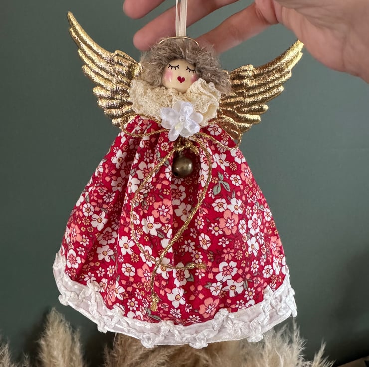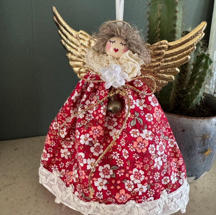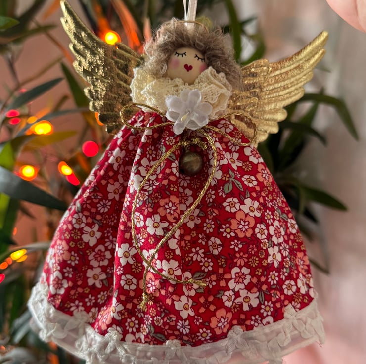 Christmas Hanging Decoration Red Gold Fairy Angel