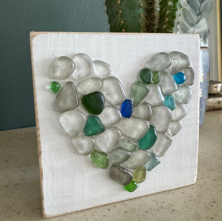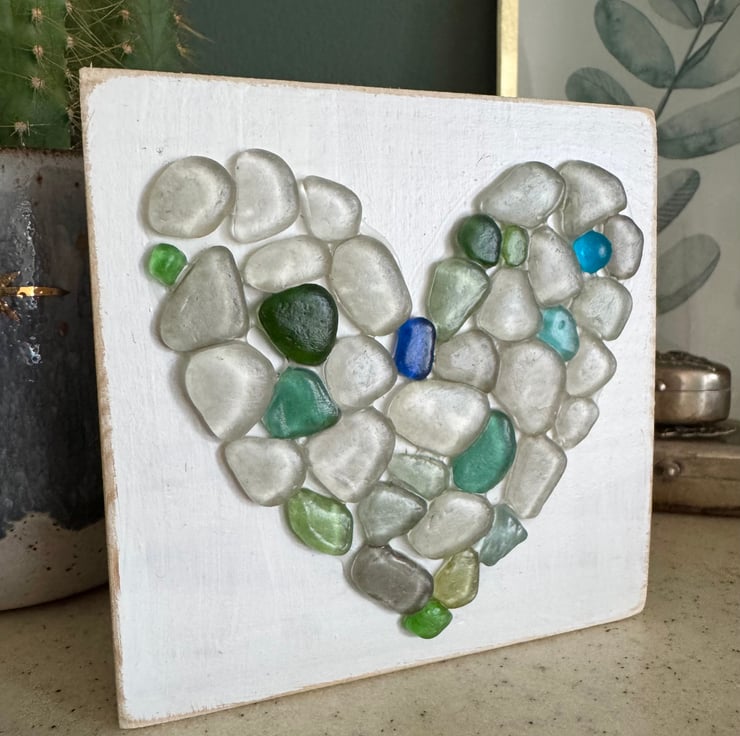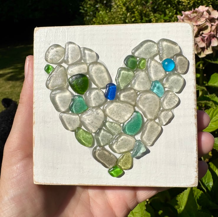 The sea glass is neatly set and coated with varnish for a lovely, smooth and shiny finish. The backs have been decoupaged with vintage book pages and sealed. So pretty!