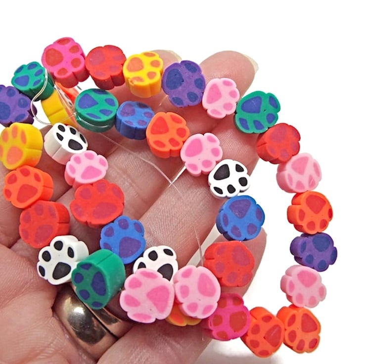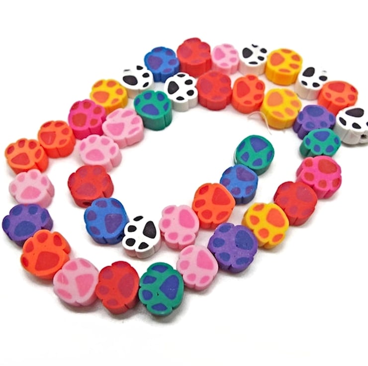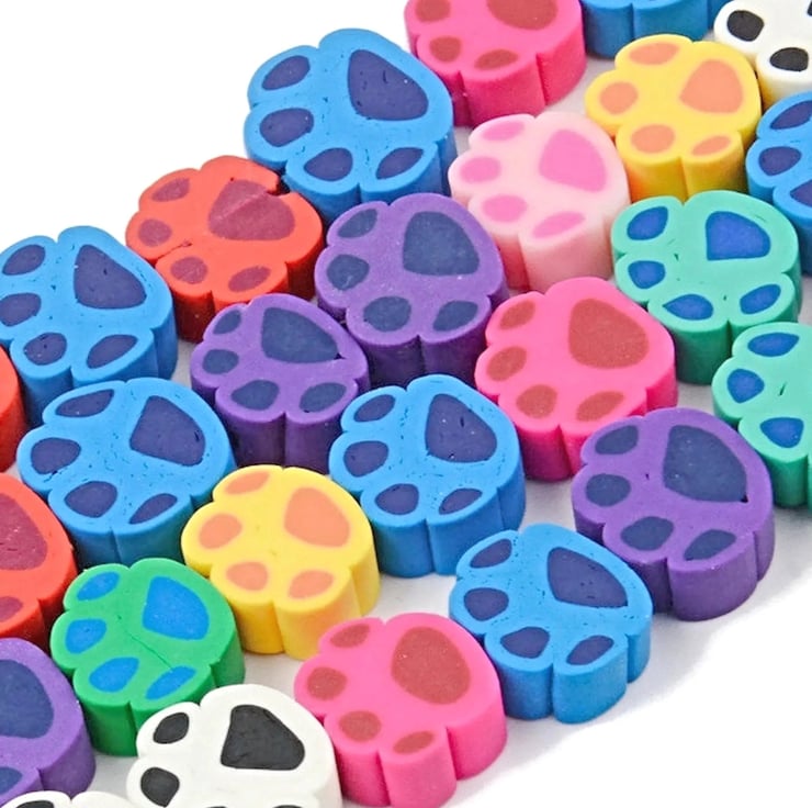 Strand of approximately 40 Polymer Clay Paw Beads in Random Mixed Colours