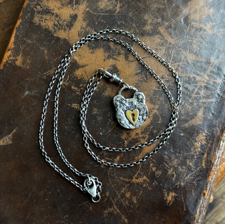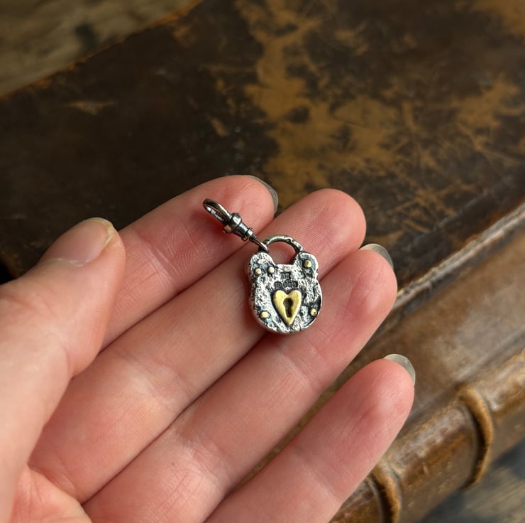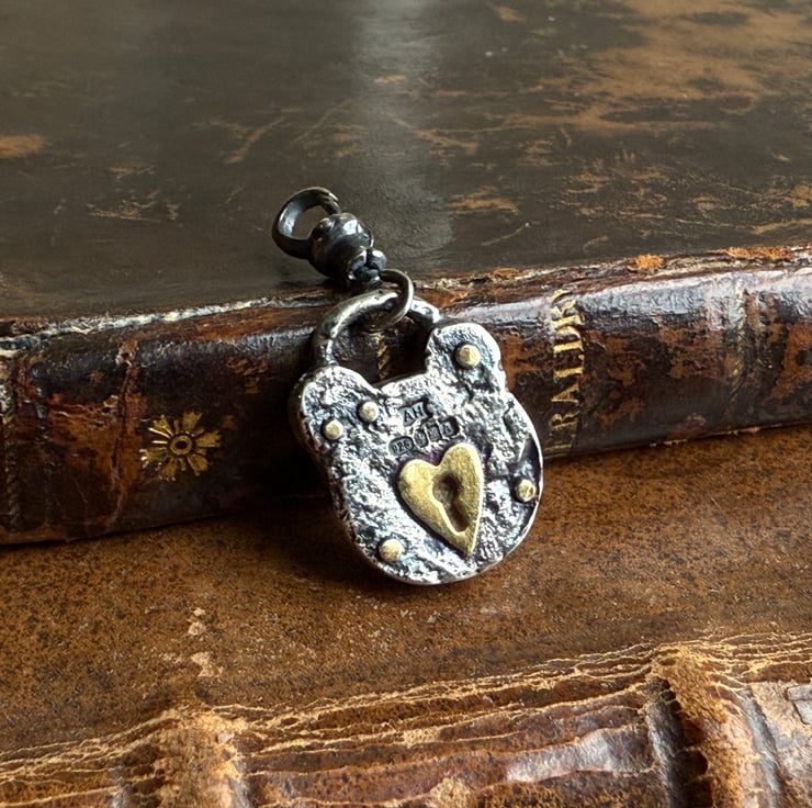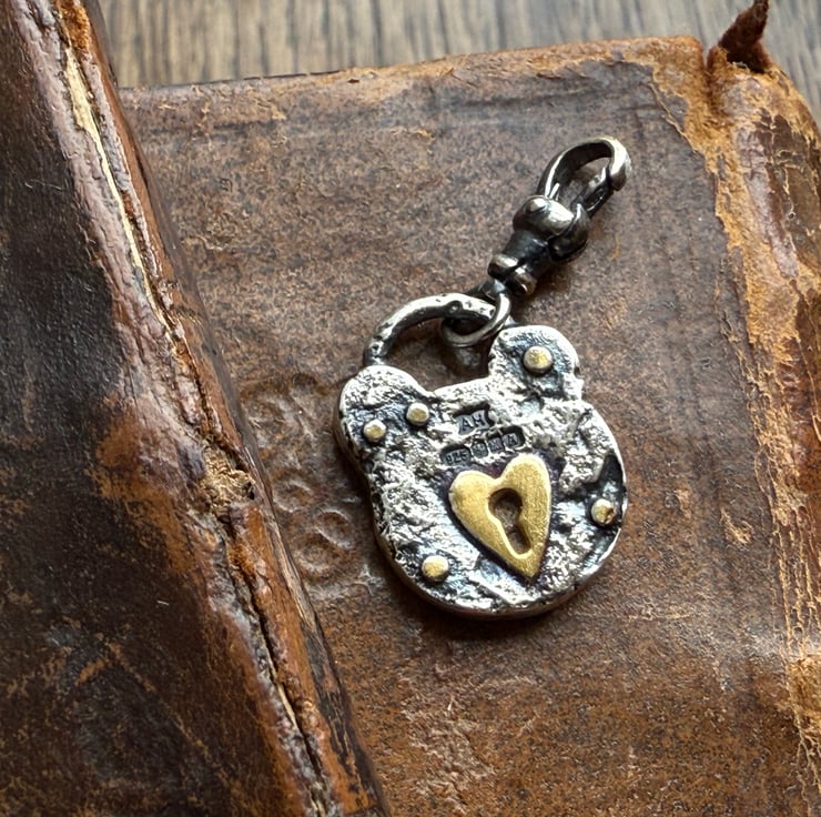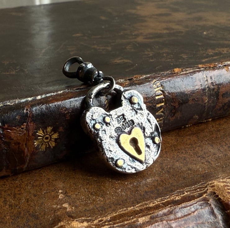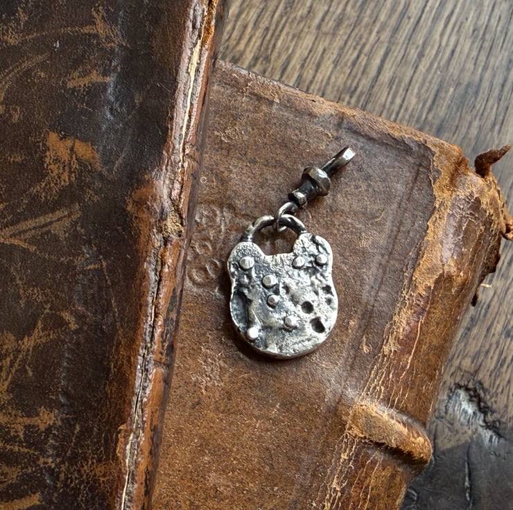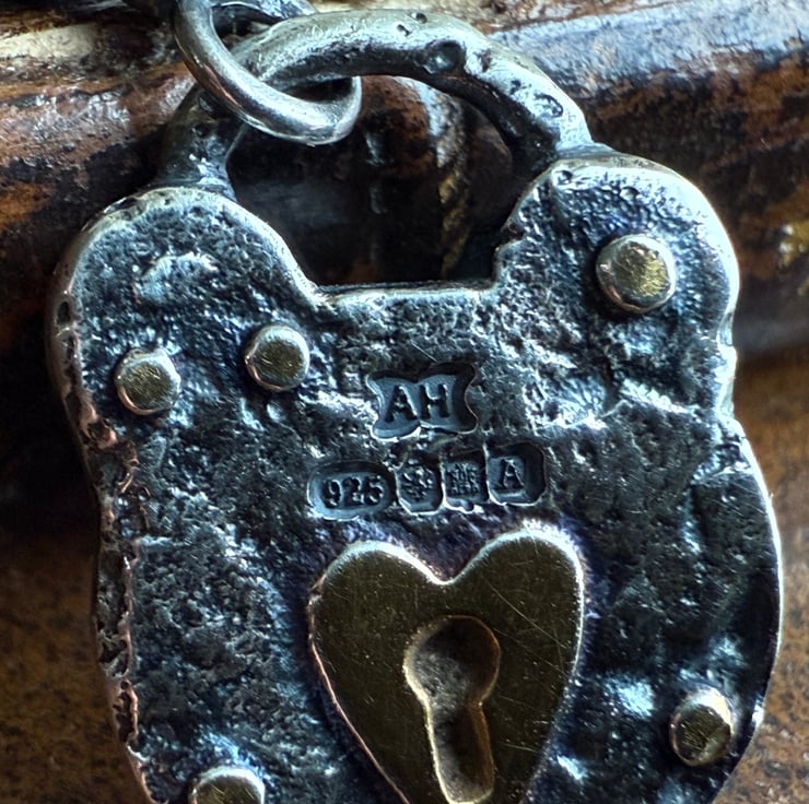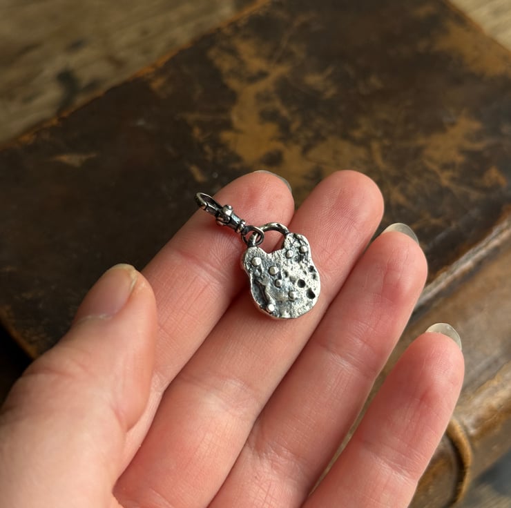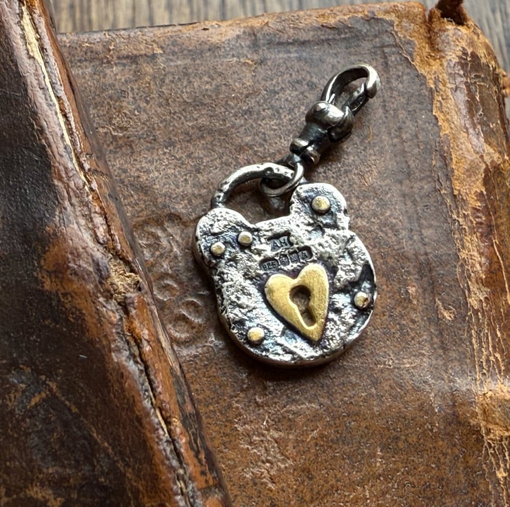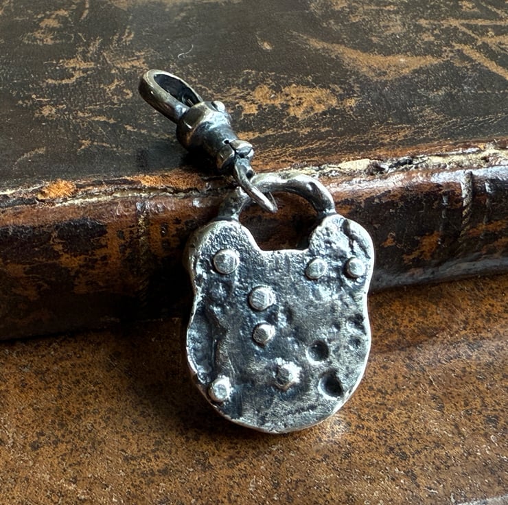 A unique padlock charm inspired by the old, rusted British style victorian-Edwardian iron padlocks we find on our mudlarking adventures.