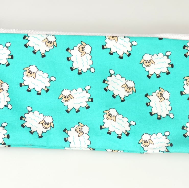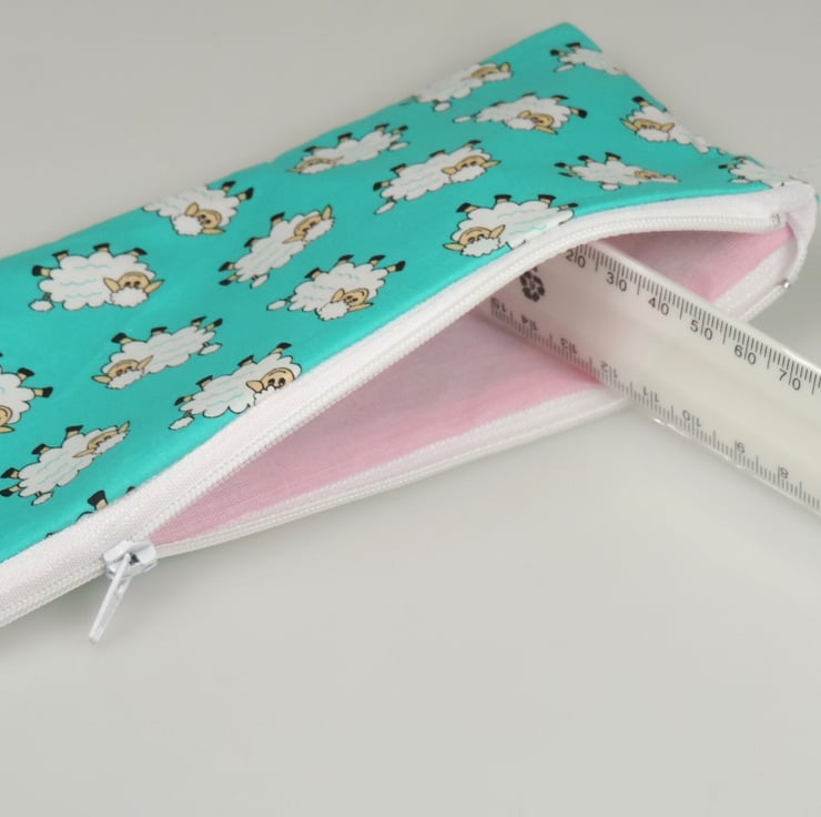 Kawaii Sheep Pattern zipped lined pencil case, Stationary, school, gift,