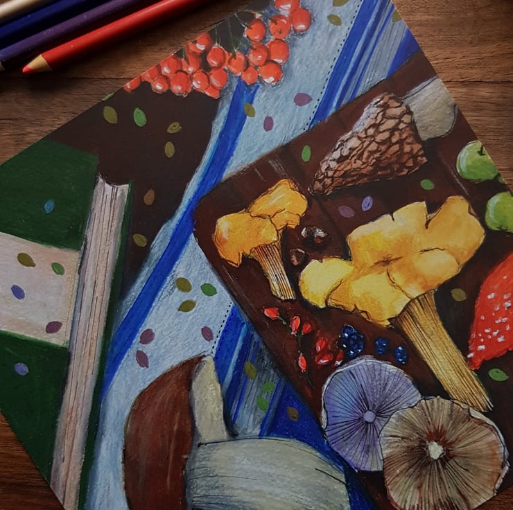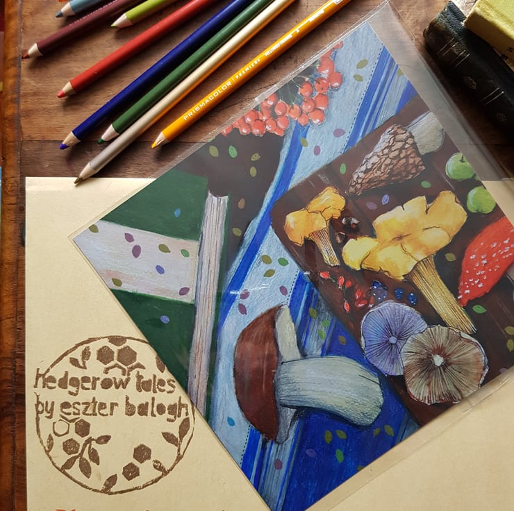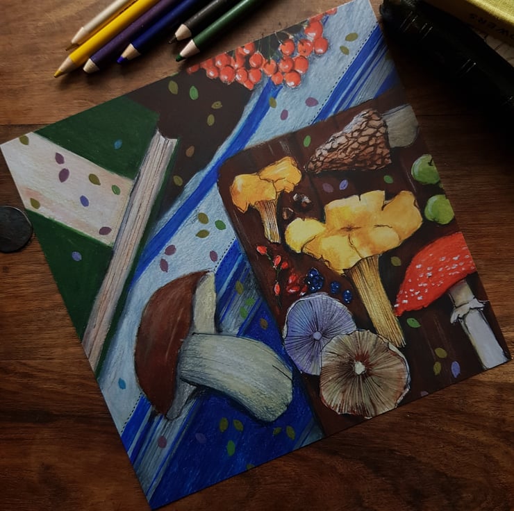 The artwork for this print was inspired by the beautiful colours and textures of different mushrooms.