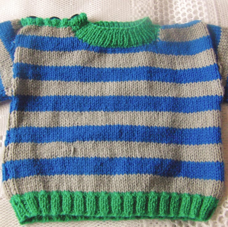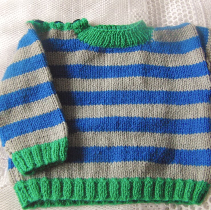 Hand Knitted Striped Baby Sweater, Stripey Baby Jumper, Knitted Baby Clothes, Baby's Jumper, Baby's Sweater, Baby Shower Gifts, New Baby Gifts