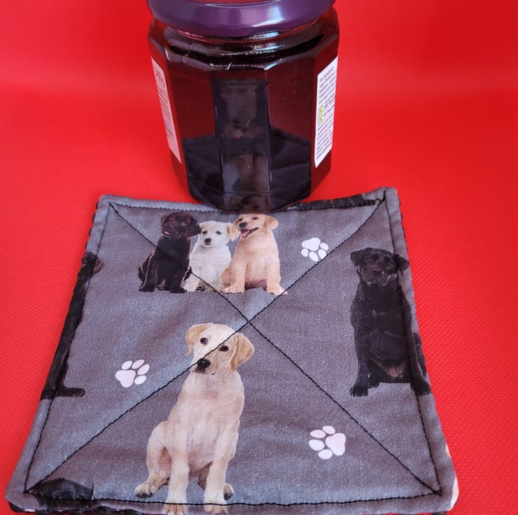 A useful tool to help open jars and bottles.These make a great gift for older relatives or anyone who ever struggles to get the lids off jars. Cotton fabric with a rubber backing which gives a strong grip to loosen the tops of jars and bottles. I've added a hanging loop for hanging up in the kitchen.