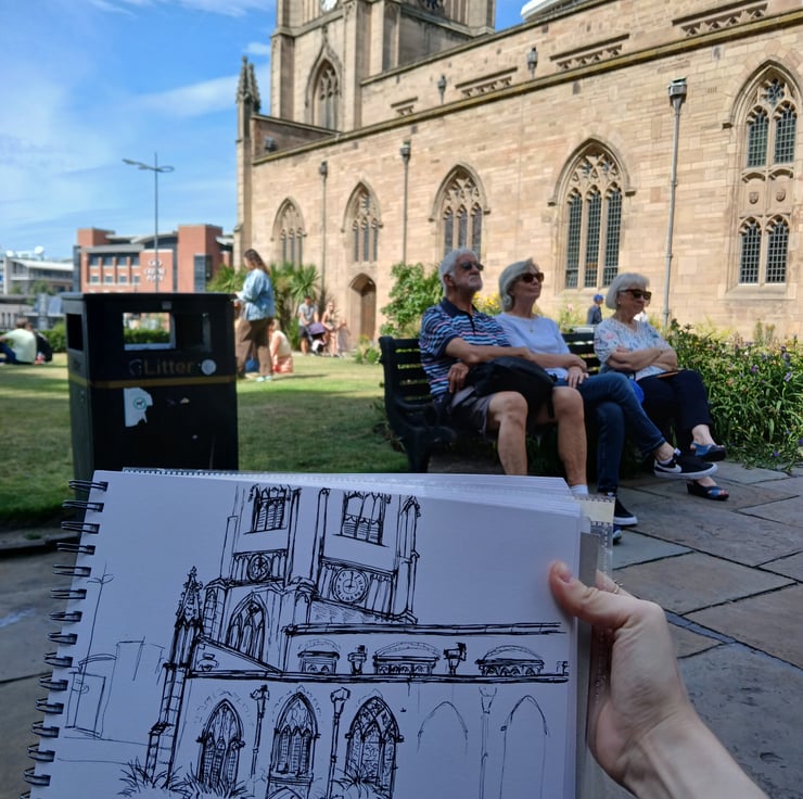 This was sketched in person at my first Liverpool downtown sketchers club meet up. I enjoyed freely going in straight with pen, and then painting later at home.