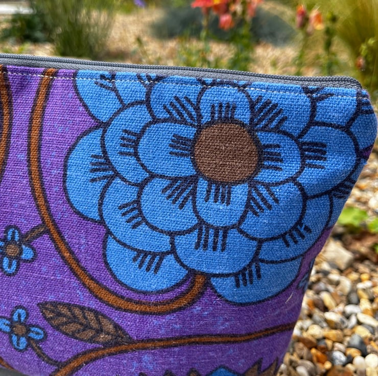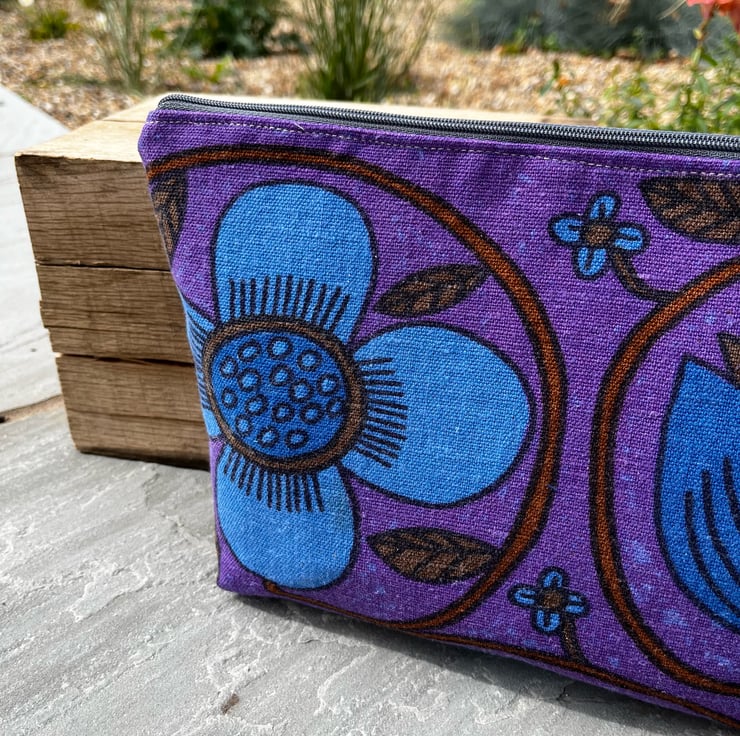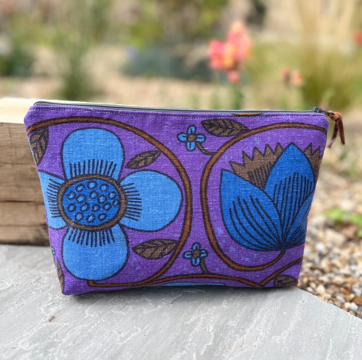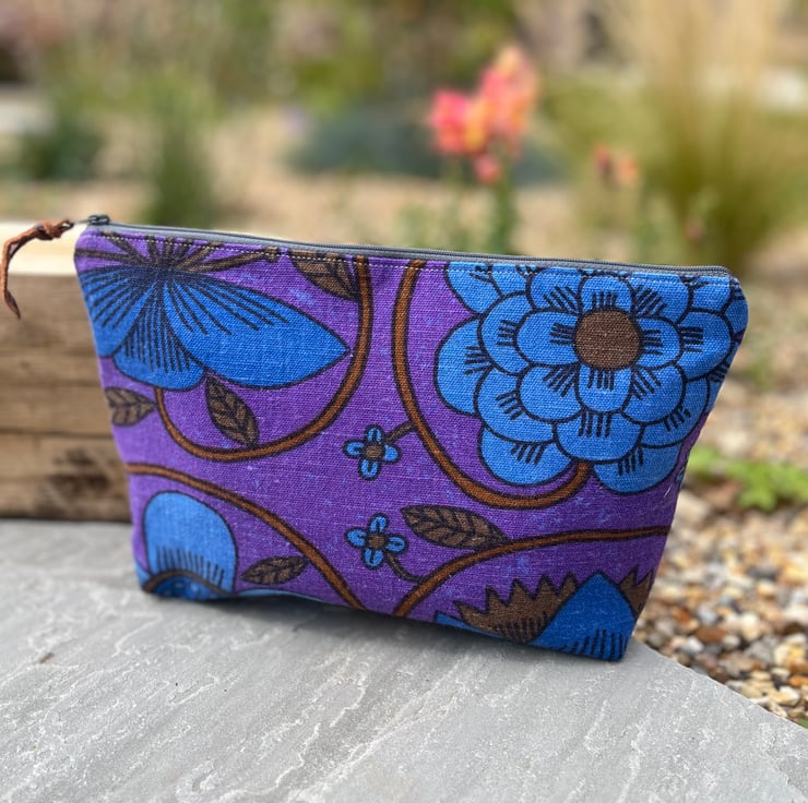 Large zip pouch ideally sized for organising your everyday essentials in your handbag. This lovely bold floral linen is Prince of Quince sold by Conran fabrics in the 1960s.