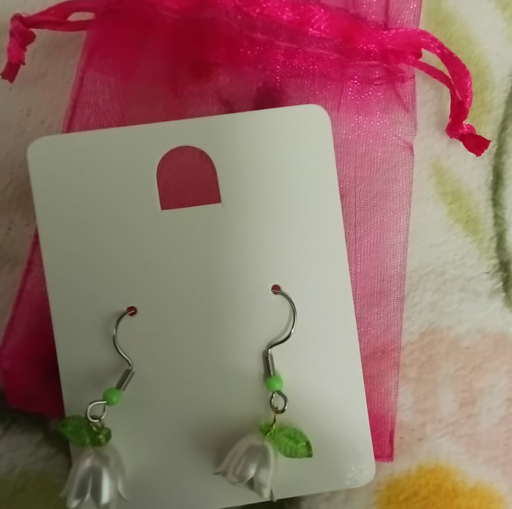 Very pretty lily of the valley drop earrings, so cute. Silver plated. Loved pearl effect on the petals & nice detail on the green leaf.