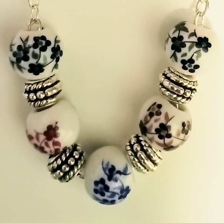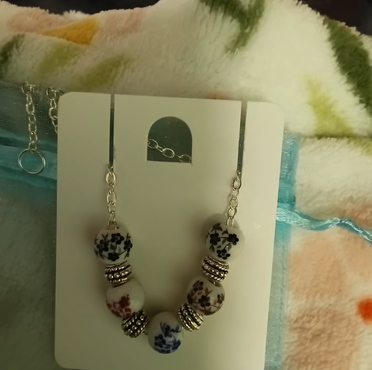 Lovely little painted flowers on the beads, very pretty, Beads are not fixed so can move freely on the chain. Good length on the chain so plenty of room to extend or make smaller.