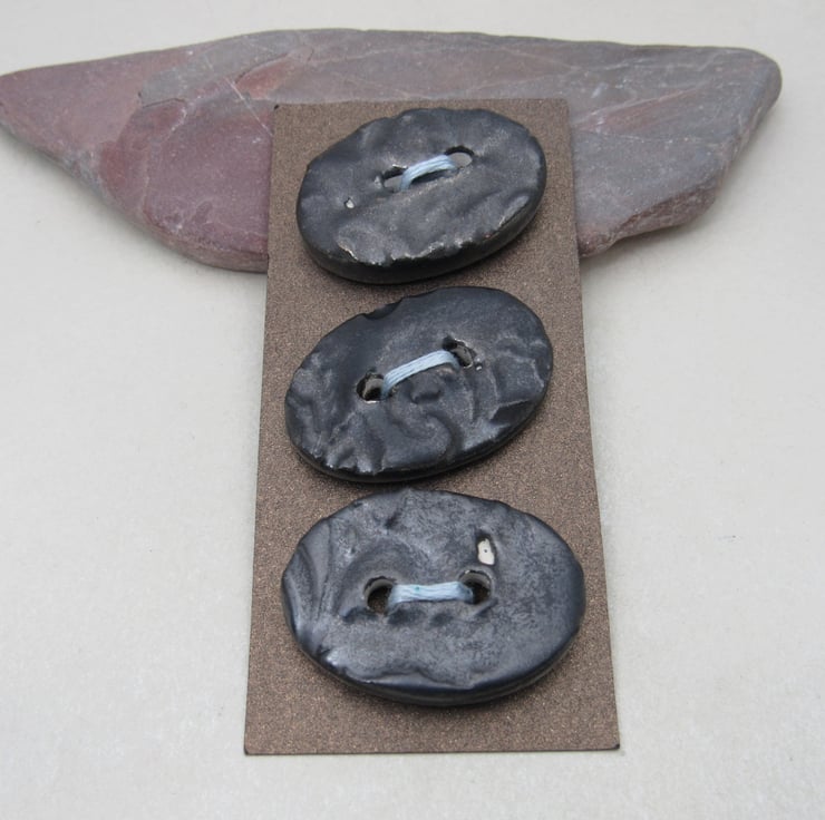 3 Medium Oval Dark Metallic Brocade Pattern Ceramic Buttons