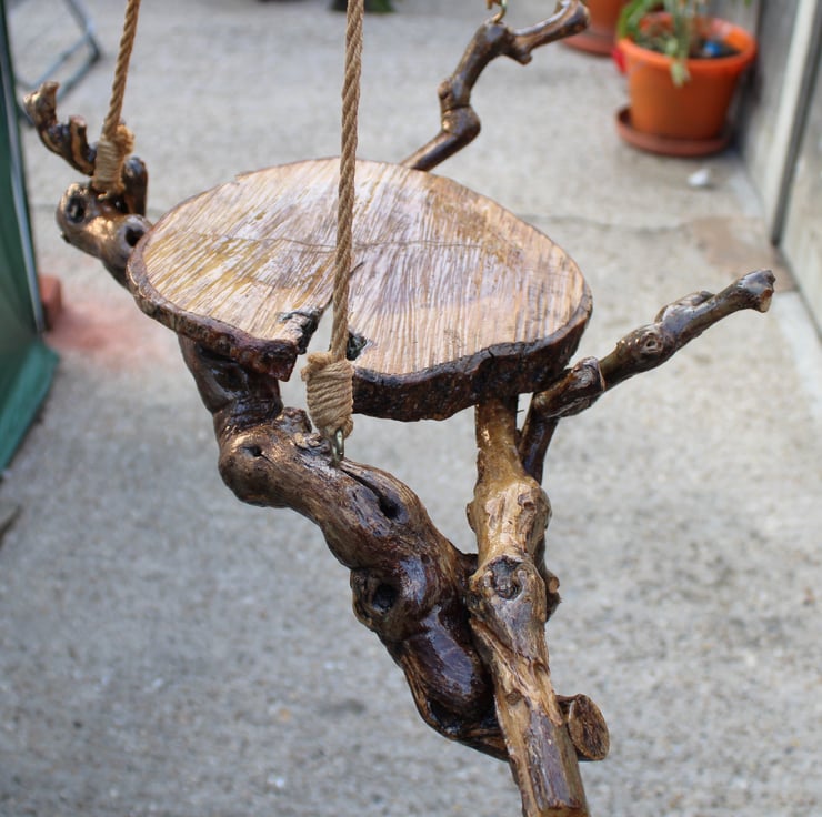 This hanging flower stand was made in 2016 in Bulgaria! In February, the vines are cut and the old tree is removed! While cleaning, I discovered the beauty of the branches from the vine! With a different and bizarre shape, winding upwards to seek light! I cleaned them, let them dry and cut a ring from the tree! And so my idea for these abstract flower stands arose!