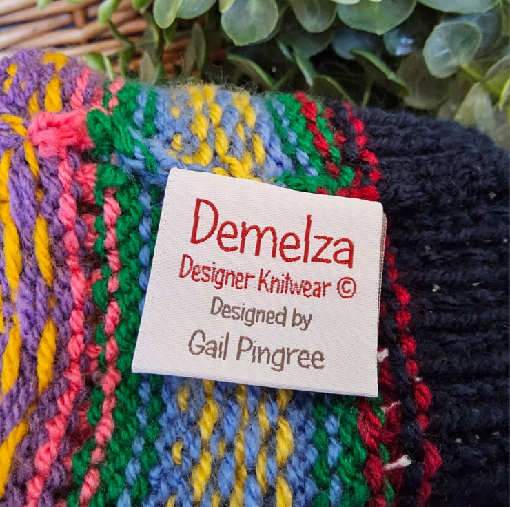 The luxury soft damask garment label has been hand sewn to the inside of the hat seem with the care instructions woven within it for lasting reference. A matching Demelza Designs garment swing tag is attached for a totally professional finish one expects from quality designer garments.