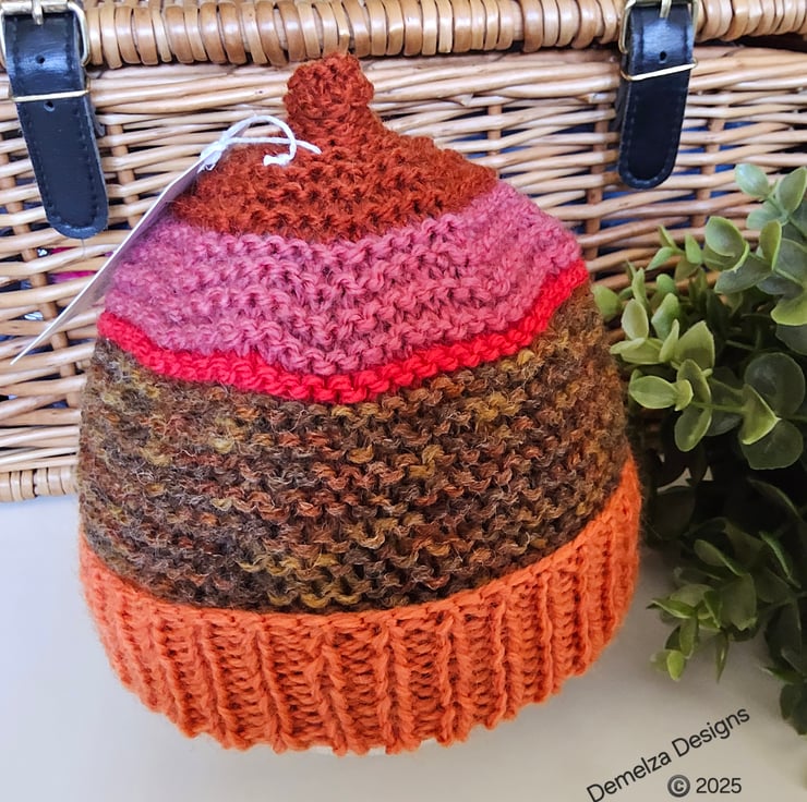 This is a genuine designer product. It has not been reproduced from any commercially published knitting pattern. Please respect the designer's full time profession, skilks and modest income for two hours quality craftsmanship by not replicating it. This includes using different yarns, colourways, added trims, stitch formations, images and artwork.