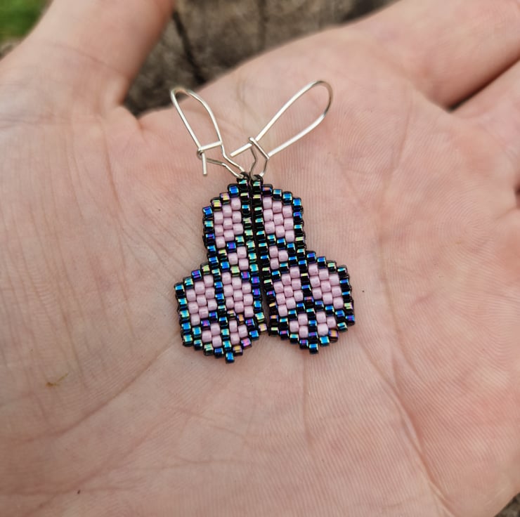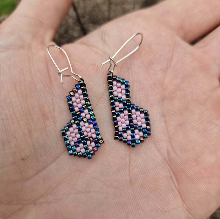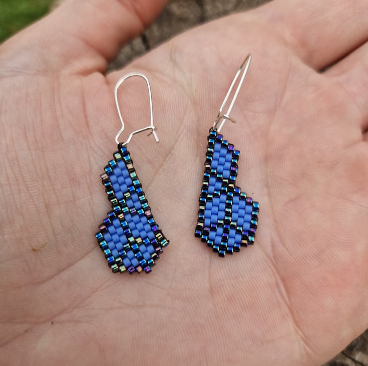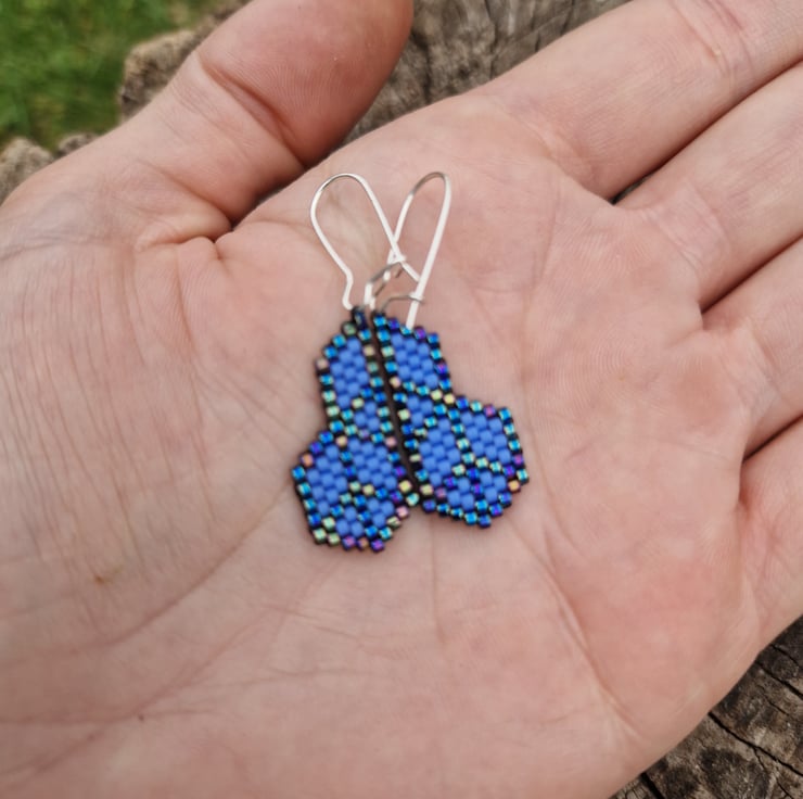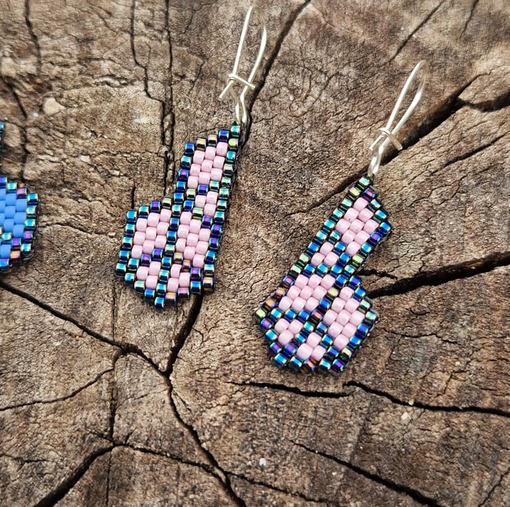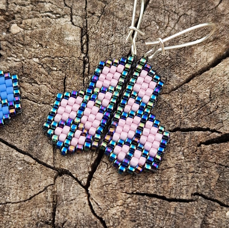 These have been lovingly crafted from high quality delica beads in a shimmering metallic blue, and either pink or blue.