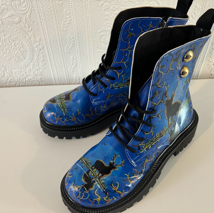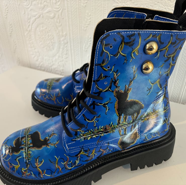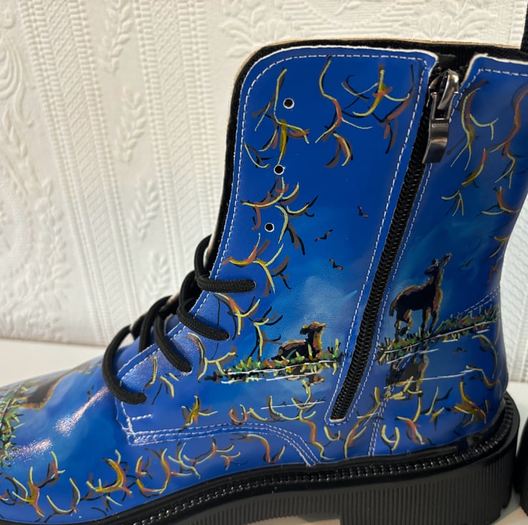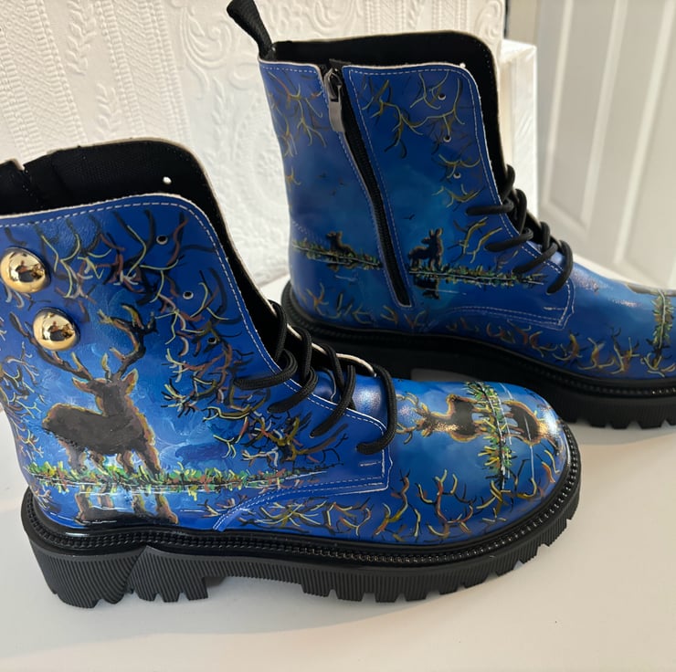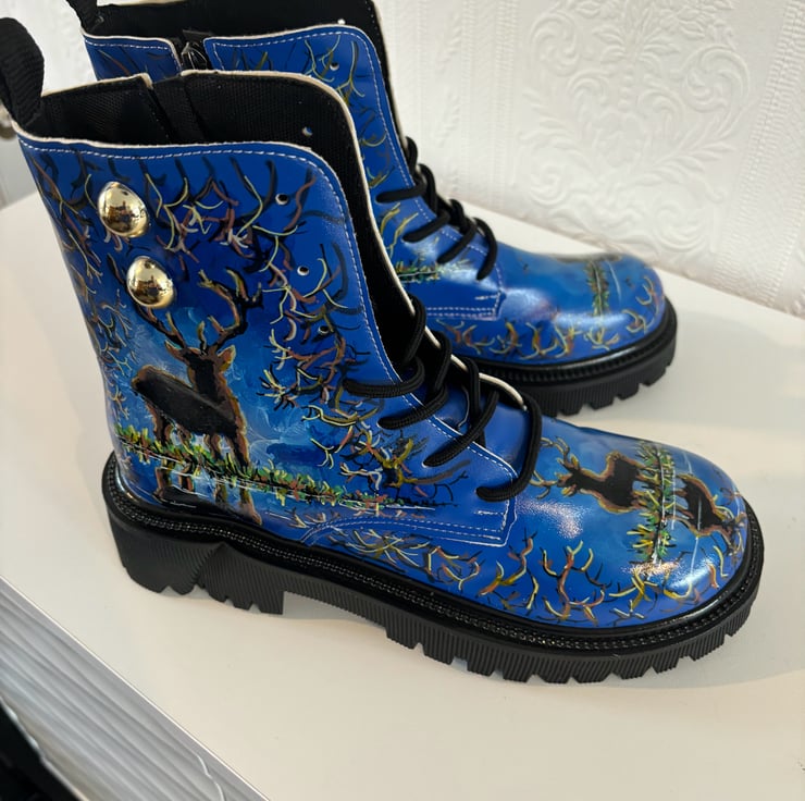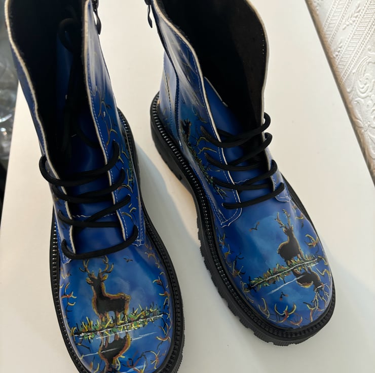 A pair of hand painted and sealed boots by Andrew Jenkins