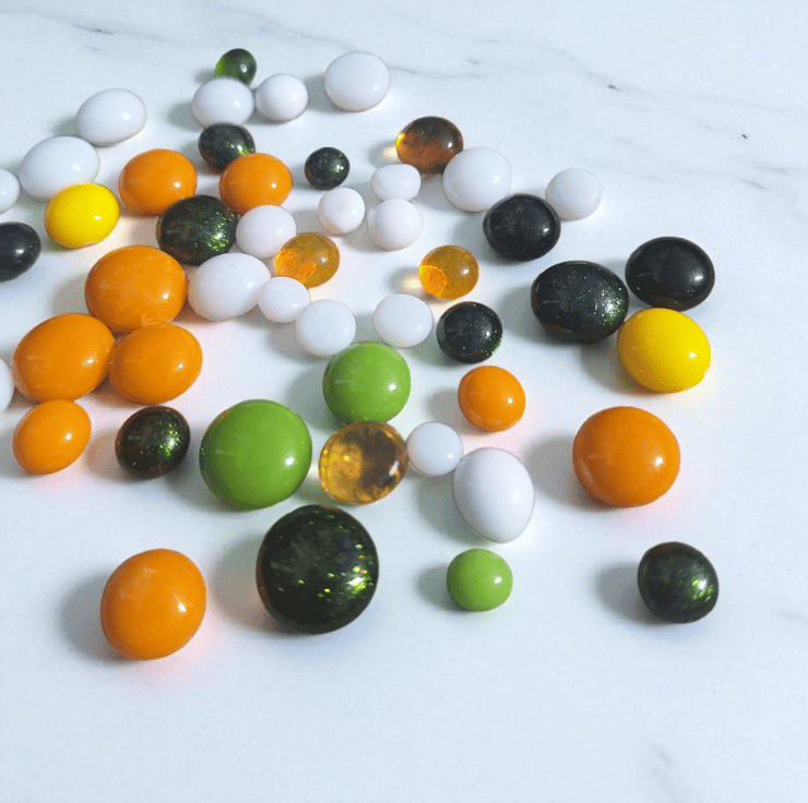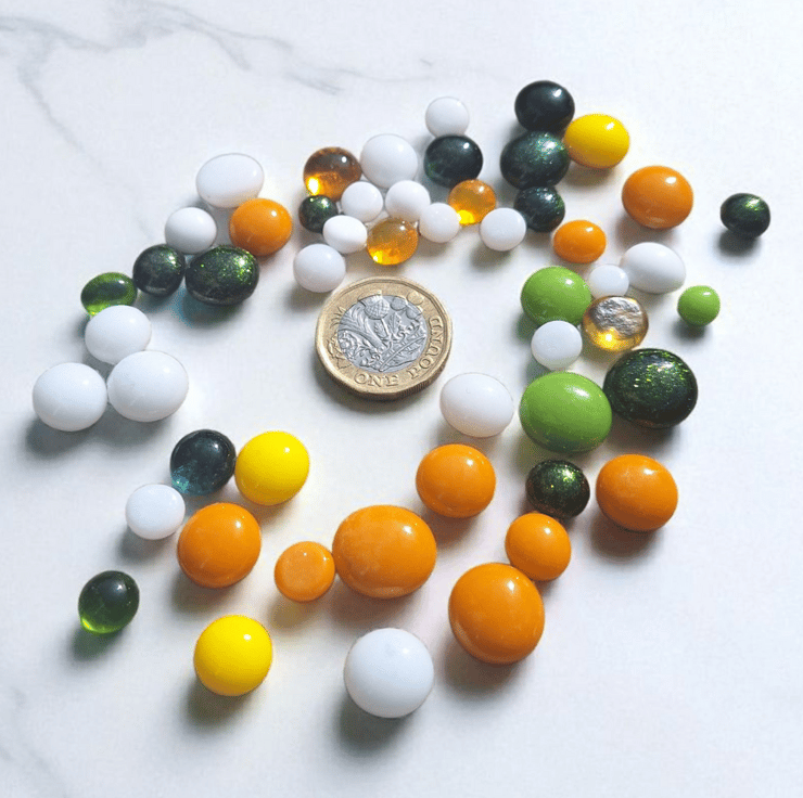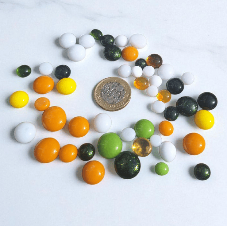 Whether you’re an artist, jeweller, or hobby crafter, this spring-inspired mix of glass dots will brighten your designs and bring seasonal colour to your work. Handmade in the UK, they make a versatile and beautiful addition to any craft studio.