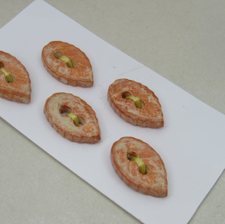 5 Small Leaf Shaped Terracotta Glazed Ceramic Buttons