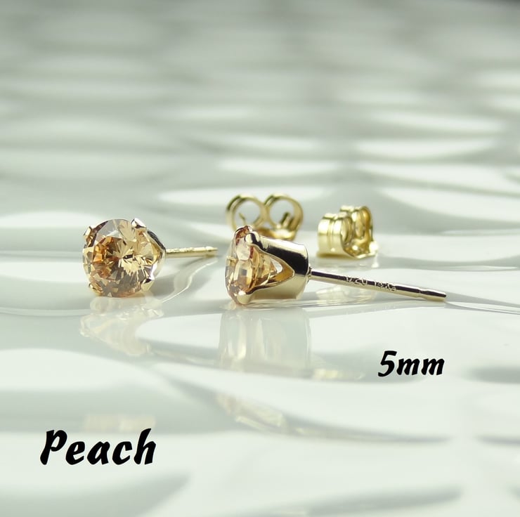 Cubic Zirconia stud earrings, sterling silver or 14k gold filled, peach, 5mm