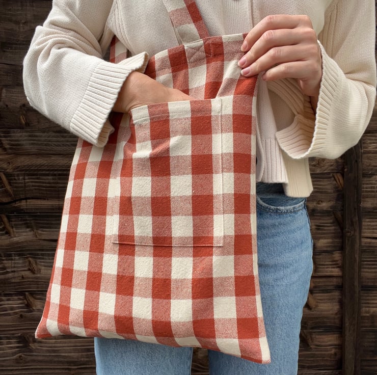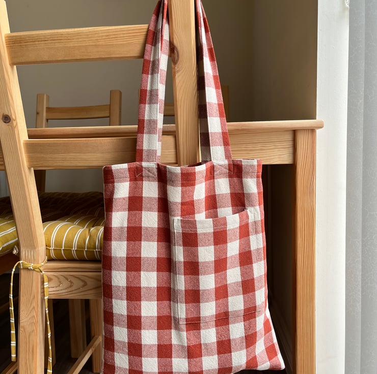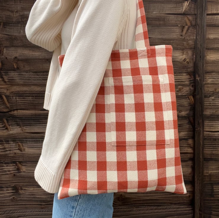 Carry your essentials in style with this checkered cotton tote bag! Featuring a classic gingham pattern, this eco-friendly reusable market bag is perfect for groceries, books, or everyday outings. Lightweight yet durable, with a roomy interior and a handy front pocket, it’s the ideal everyday tote for work, school, or casual days out.