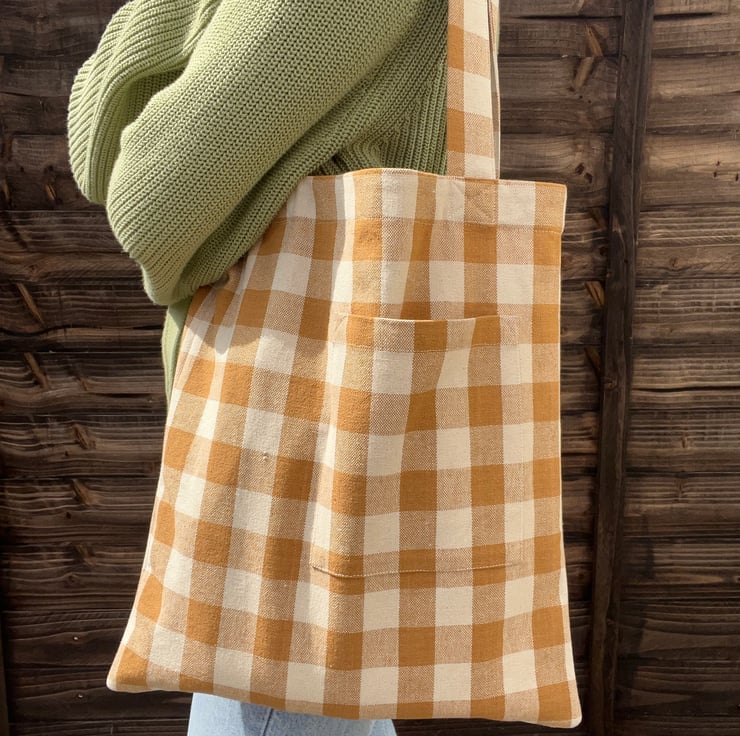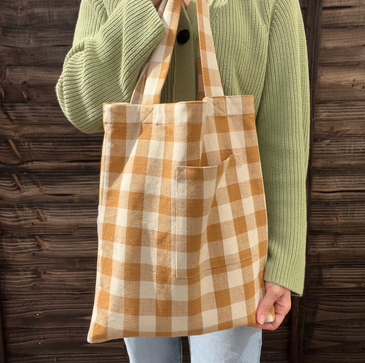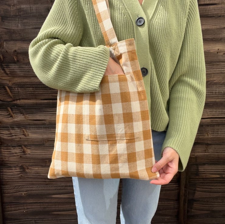 Carry your essentials in style with this checkered cotton tote bag! Featuring a classic gingham pattern, this eco-friendly reusable market bag is perfect for groceries, books, or everyday outings. Lightweight yet durable, with a roomy interior and a handy front pocket, it’s the ideal everyday tote for work, school, or casual days out.