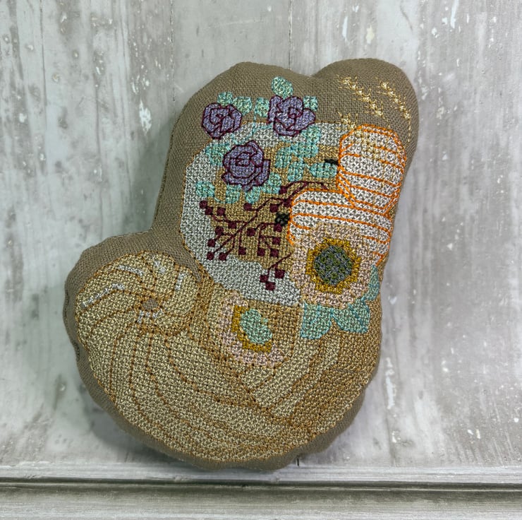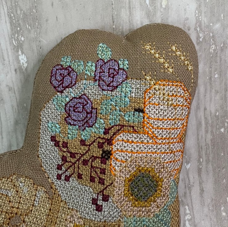 Bowl Filler machine embroidered cross stitch design. Measuring 5.25” x 4.5”. Camel pre washed linen fabric filled with polyester fibrefill. Little pillows of fun. This design represents a Cornucopia. Select 1 or fill a bowl full of autumnal colour.