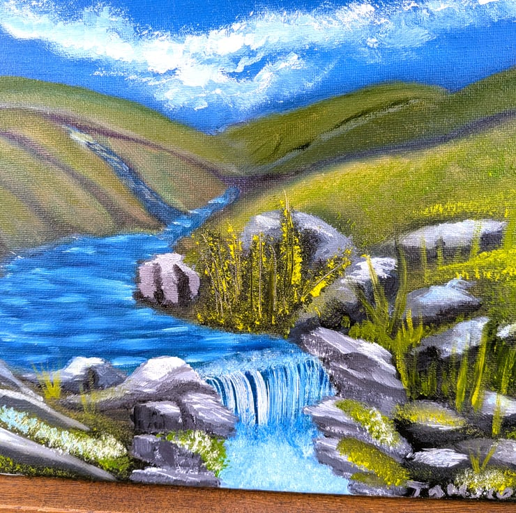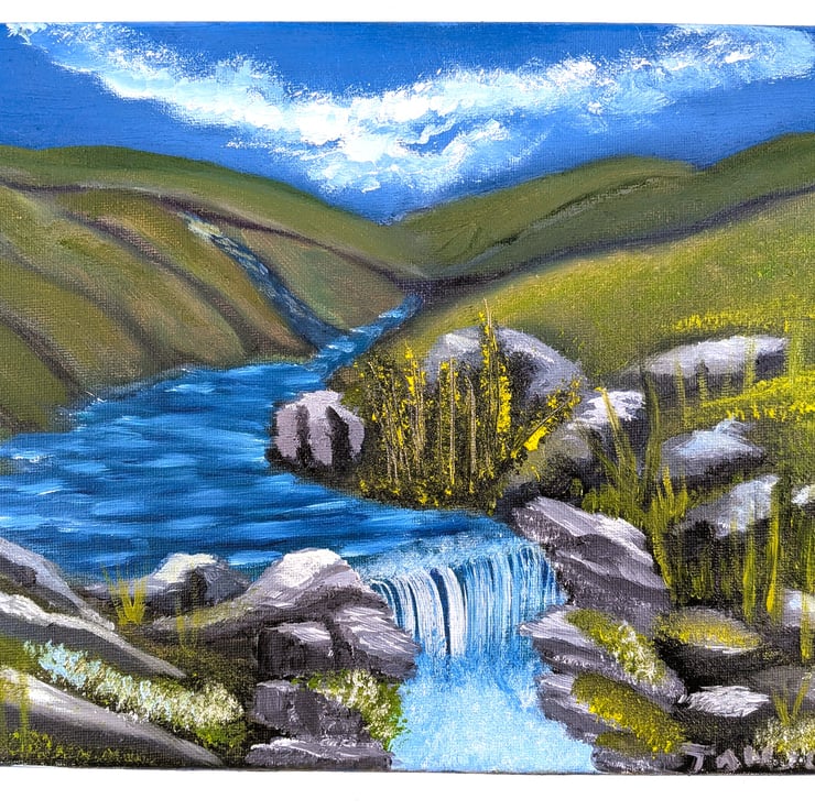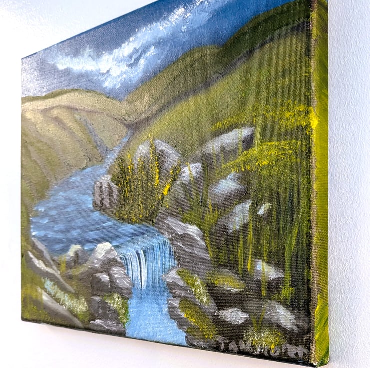 This small oil painting, a testament to Tom's artistic skill, beautifully depicts a waterfall in an isolated valley. It is an original masterpiece, with no prints or copies to dilute its uniqueness. This painting is an abstract representation of the numerous rural waterfalls that grace the Scottish Highlands, a sight that never fails to inspire.