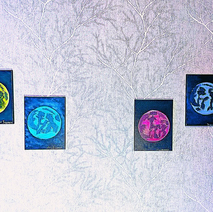 Set of Full Moon Original Oil Paintings, in four different colours, home decor